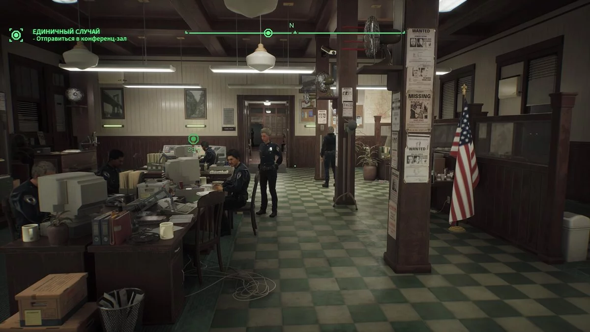 Структурно игра напоминает Deus Ex: Human Revolution, но без глубины. У нас есть активные миссии и большие мирные эпизоды — либо в городе, либо в полицейском участке. По мере прохождения к сюжетным заданиям добавляются редкие второстепенные. В боевых эпизодах это зоны для дополнительной зачистки, а в мирных — расследования.