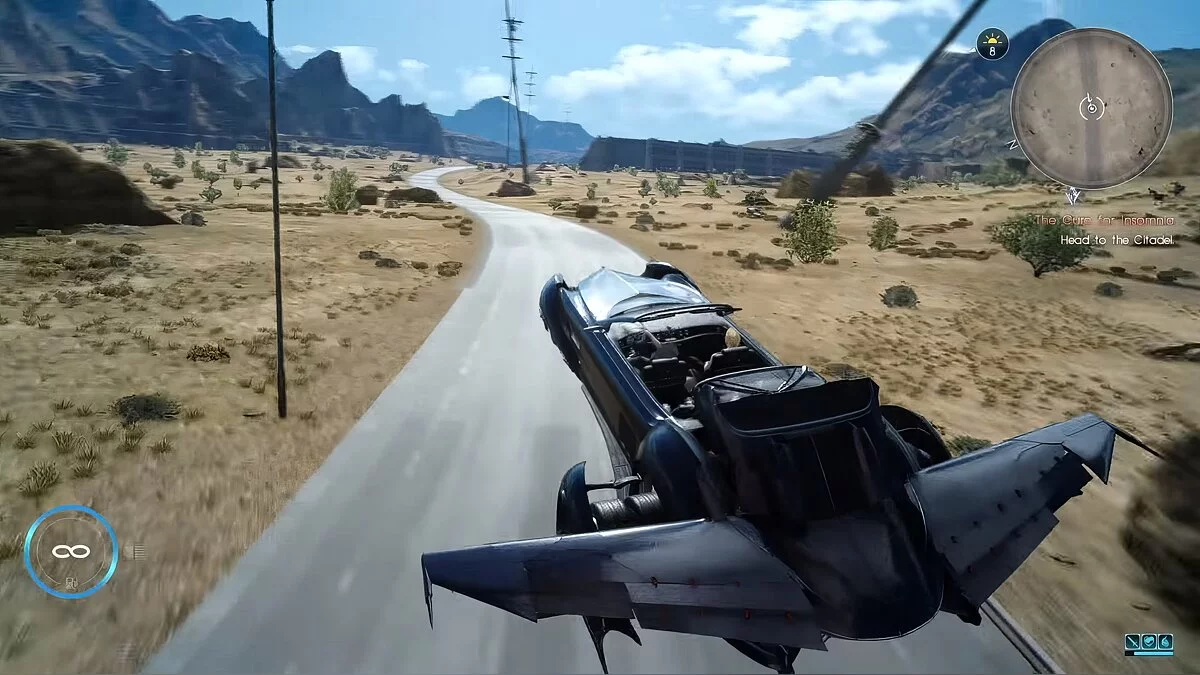 Регалия — роскошный автомобиль, на котором Ноктис ездит по Эосу, миру, где разворачивается действие Final Fantasy 15. Внешне он выглядит стандартно, особенно по меркам нашей подборки. Однако один из апгрейдов позволяет превратить этот спорткар в самолёт. Причём «рассекать» на Регалии по воздуху намного интереснее, чем ездить по местным дорогам.