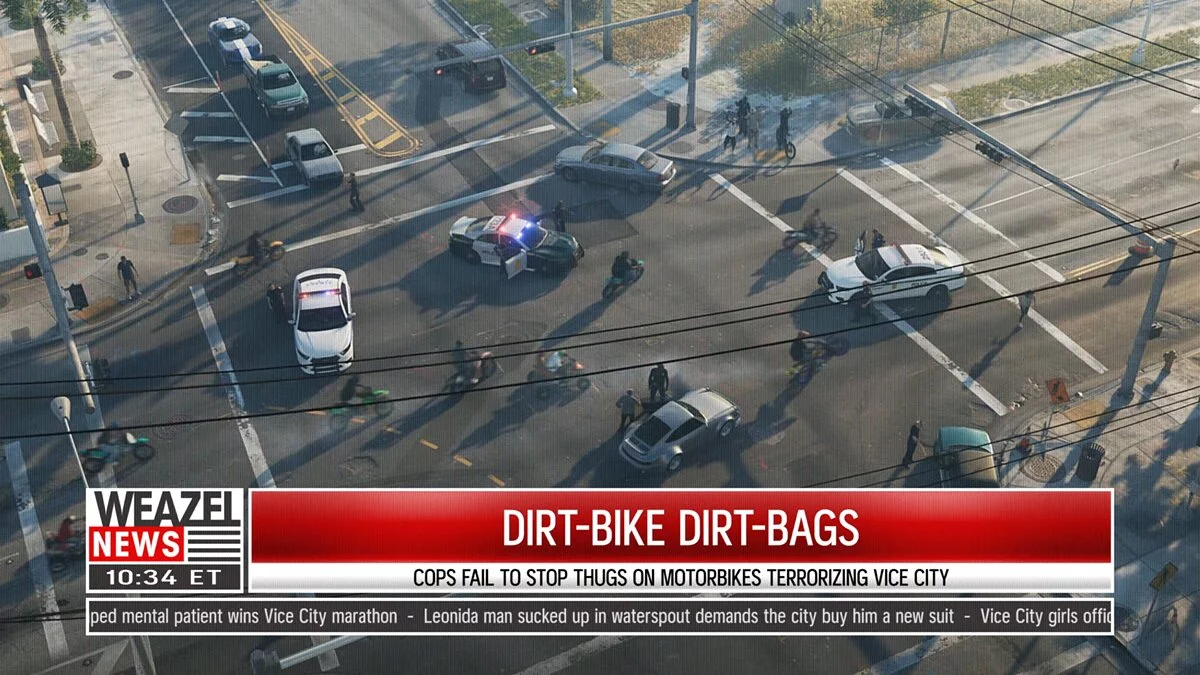 Первые кадры подтверждают заявления инсайдеров, а также утекшую информацию, что местом действия игры станет современный Вайс-Сити (Vice City). Нам показывают залитый солнцем город и похорошевшую со времен пятой части графику.