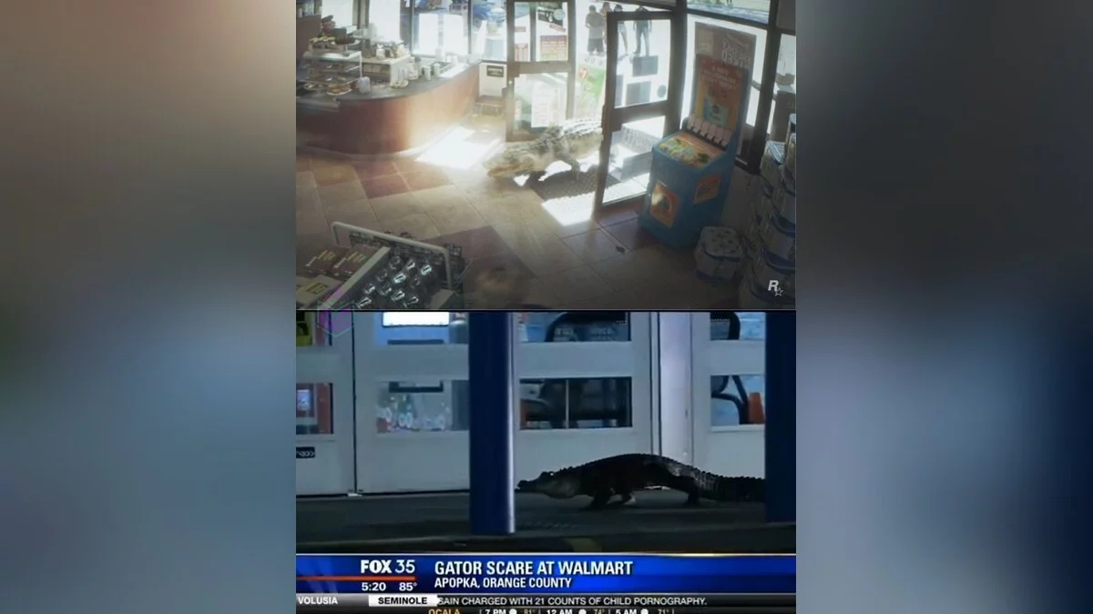 Rockstar вполне серьёзно добавила в трейлер сцены с арестованным в 2017 году преступником, чем-то напоминающим Джокера, безумной женщиной с двумя молотками, которая хотела разбить машину соседей, аллигатором в магазине Walmart, крокодилом в бассейне, латинской девушкой на машине, голым мужчиной на парковке, ещё одним, что занят своим газоном, и мужчину, фотографирующего свою девушку. Вероятно, в самой игре подобных отсылок будет в разы больше.