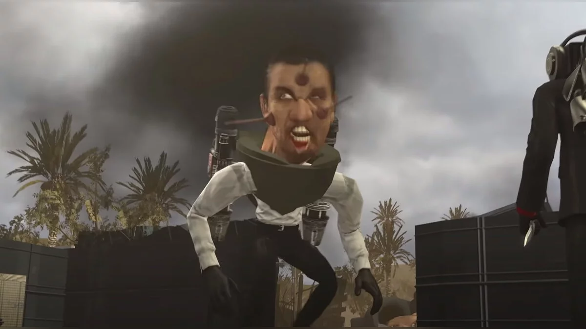 Во время очередного сражения появляется огромный скибидист с лицом G-Man из Half-Life 2. Он убивает всех камераменов лазерными лучами из глаз, как Супермен или Хоумлендер.