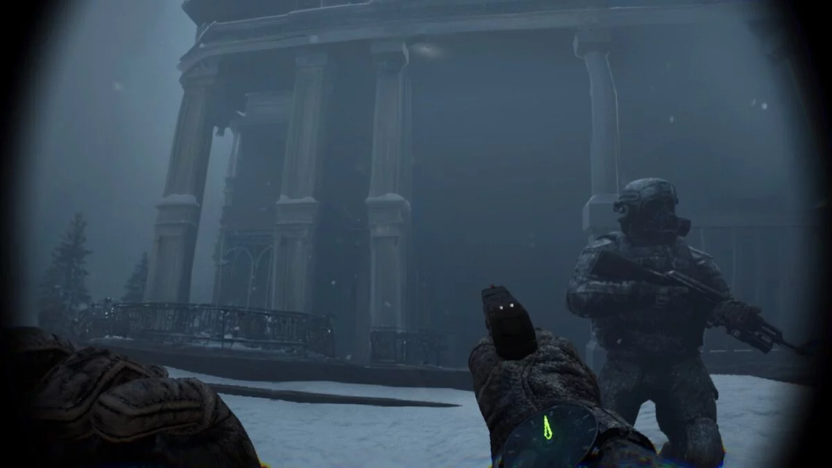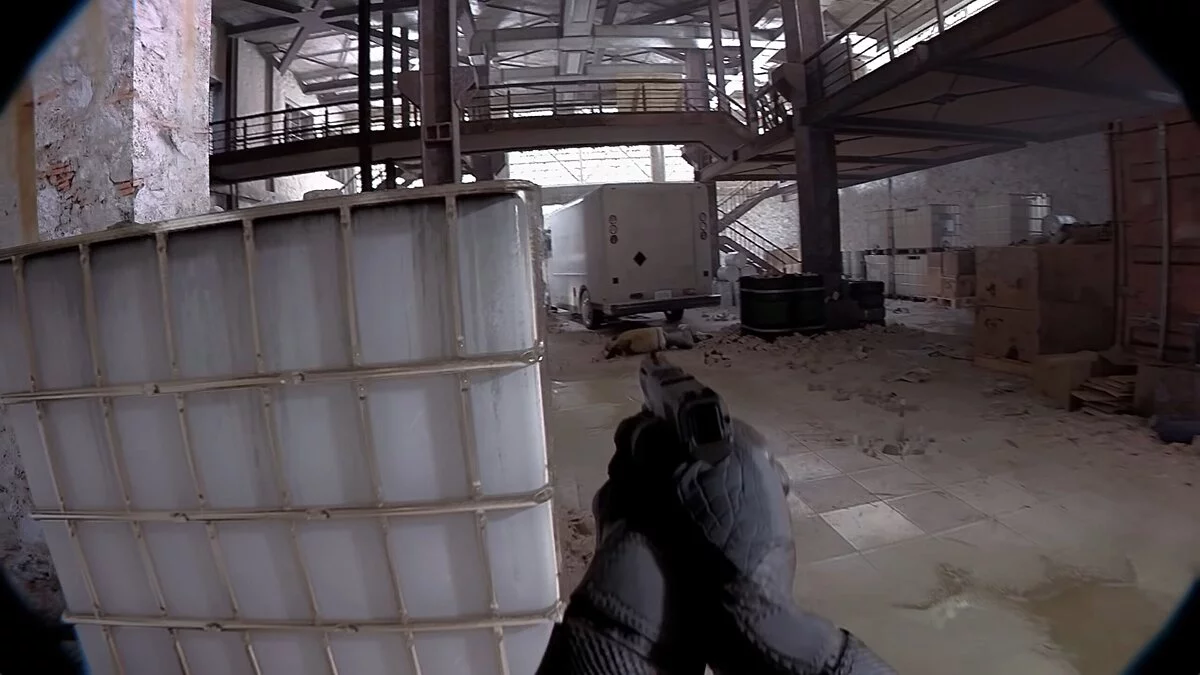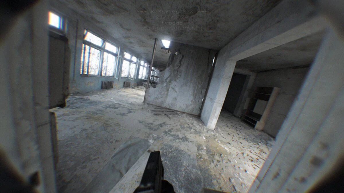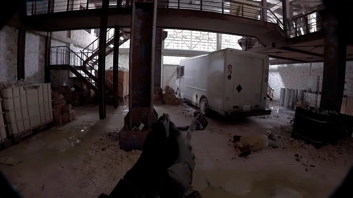 Разобравшись в том, как работает стилизация под реализм, мы плавно возвращаемся к Bodycam-проектам. Теперь мы знаем, как Unrecord удалось затуманить рассудок и заставить нас поверить в реалистичную картинку. Разработчик-одиночка замаскировал довольно простой в реализации концепт на Unreal Engine 5 под съемку с нагрудной камеры. Вдобавок он воспользовался особыми «читами», которые помогли обмануть воображение: особая локация, приглушенная цветокоррекция и объектив «рыбий глаз». О них мы более подробно расскажем чуть ниже.