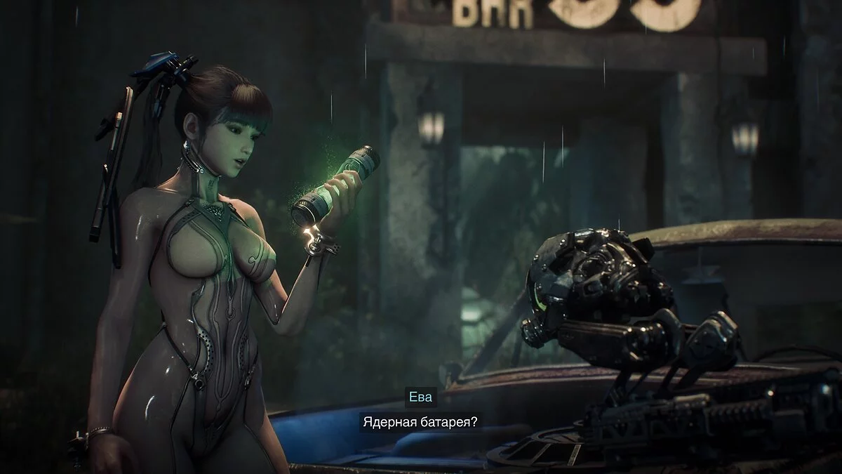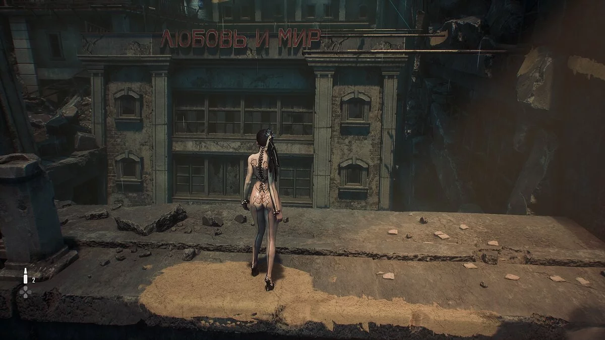 Высадка проходит неудачно, подругу Евы убивают, а саму её спасает неизвестный парень со звучным именем Адам. После этого героиня соглашается ему помочь и отправляется в разрушенный город за важной информацией. С этого момента происходит два открытия. Во-первых, главным источником вдохновения для разработчиков была NieR: Automata. Мы путешествуем по постапокалиптическому городу людей с привычными, но почти полностью разрушенными строениями. Кое-где на магазинах даже встречаются русские надписи, за что отдельный респект. Во-вторых, Stellar Blade — это souls-like. Будут и костры, и возрождающиеся враги, и многочисленные шорткаты.