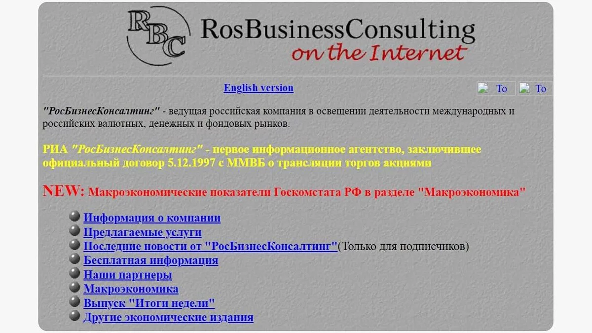 В том же году начали появляться и первые развлекательные сайты. Самый успешный из них — Anekdot.ru, на котором были собраны тысячи анекдотов разных жанров, а также забавные истории из реальной жизни. Причём они публиковались без цензуры. Редакция лишь следила за тем, чтобы не было повторов. Первые годы этот сайт был самым популярным в рунете. Но в 1998-м, на фоне финансового кризиса, этот титул перешёл к РБК («РосБизнесКонсалтинг»). Поначалу он сообщал данные о котировках ценных бумаг, а спустя время превратился в полноценное СМИ.