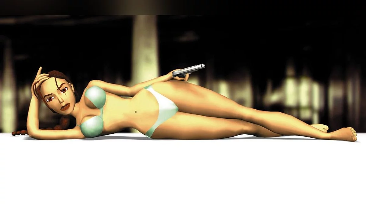 Да середины 90-х студия Core Design не выпустила ни одной действительно выдающейся игры. Не удивительно, что на этапе разработки первая Tomb Raider (1996) не воспринималась как важный проект для издательства Eidos. Поэтому у программистов была определённая творческая свобода. Однажды дизайнер персонажей Тоби Гард (Toby Gard) во время экспериментов с моделькой главной героини в шутку увеличил грудь девушки до несуразно большого размера. Этот вариант понравился его коллегам, и именно он попал в релизную версию игры. Отметим, что нарядили Лару скромно — в шортики и топик. Глубокие декольте и открытые купальники появятся намного позже.