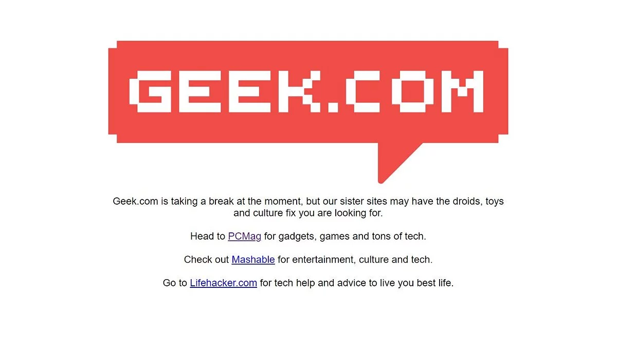 В 2011 году Ziff Davis выкупило издание Geek.com за неназванную сумму. Спустя некоторое время руководство собрало новую команду, а «старичков» сократили. Произошел редизайн, а также расширился фокус внимания на более широкие темы компьютерной культуры: технологии, игры, комиксы, фильмы и сериалы. Вот только глобальные перемены не понравились основной аудитории, и начался постепенный отток пользователей. В 2023 году сайт перестал работать в стандартном режиме. На титульной странице появилось сообщение «В данный момент мы сделали перерыв». Никто не знает, что именно произошло внутри издания Geek.com, но мы сомневаемся, что он «оживет» в ближайшее время.