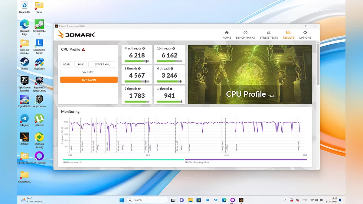 Ещё мы воспользовались 3DMark и прогнали нашего подопытного в следующих тестах: Time Spy, Time Spy Extreme, Sky Diver, Port Royal, Steel Nomad, CPU Profile и Storage Benchmark (тест скорости загрузки игр на SSD). Результаты на скриншотах.