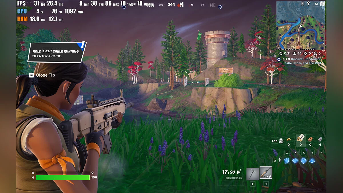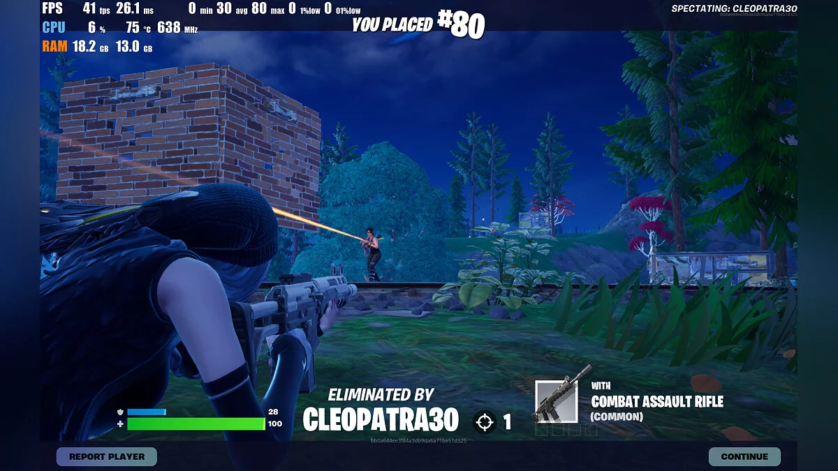 Fortnite. Еще одна игра, с которой MagicBook скорее справился, хотя уже и на пределе сил. Видимо, сказывается шустрый процессор, быстра оперативная память и одно из сильнейших решений по части встроенной графики. Средненькие 40 FPS в игре — далеко не предел мечтаний, но геймплей оставался плавным и хотя бы не раздражал.