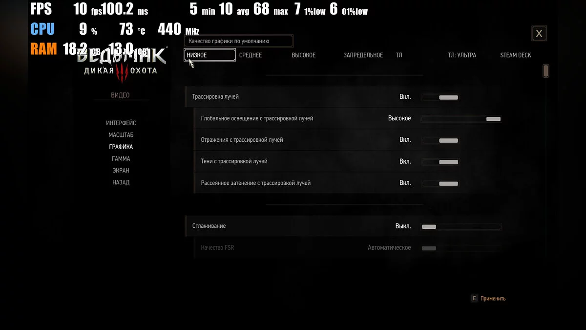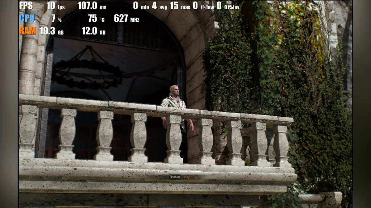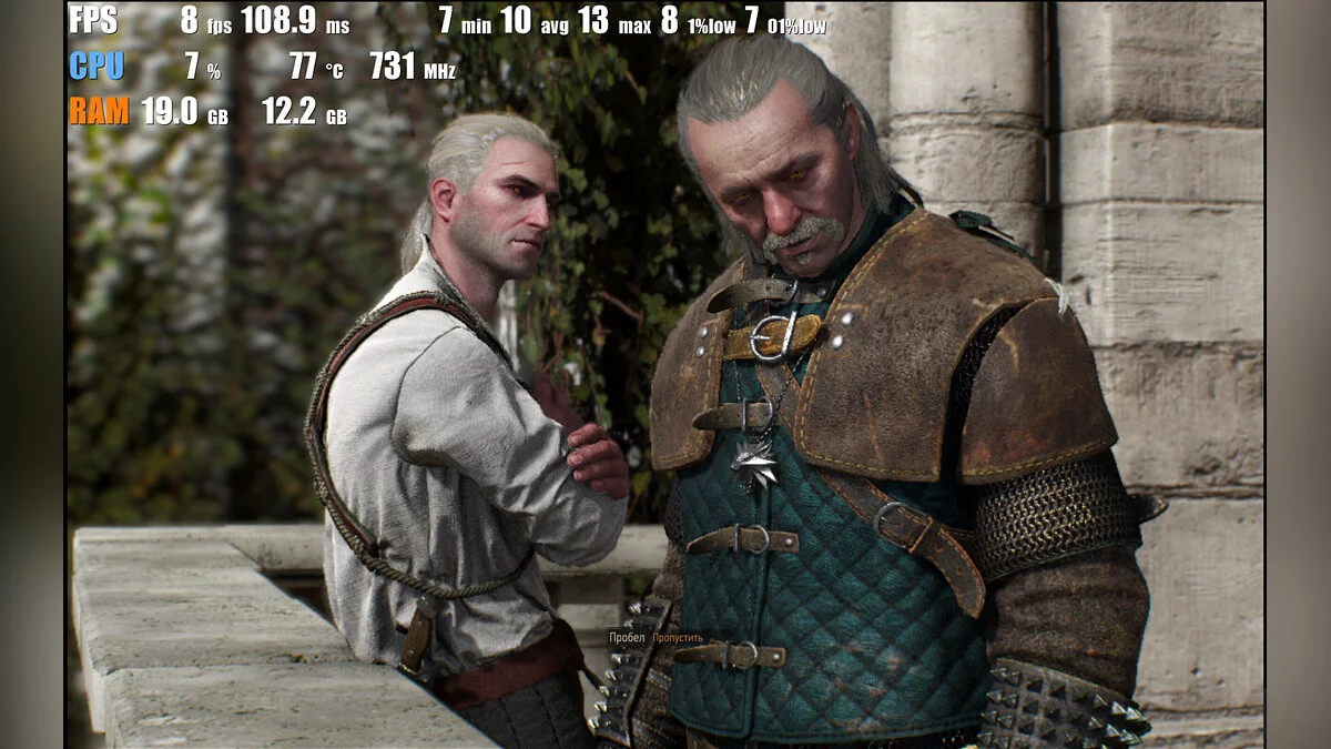 The Witcher 3. 8-10 FPS — приключения в фэнтезийном мире едва ли возможны с такими показателями. При этом все визуальные настройки были скинуты до минимальных значений. Прости, Геральт, но этот ноутбук не рассчитан на проекты вроде «Ведьмака».