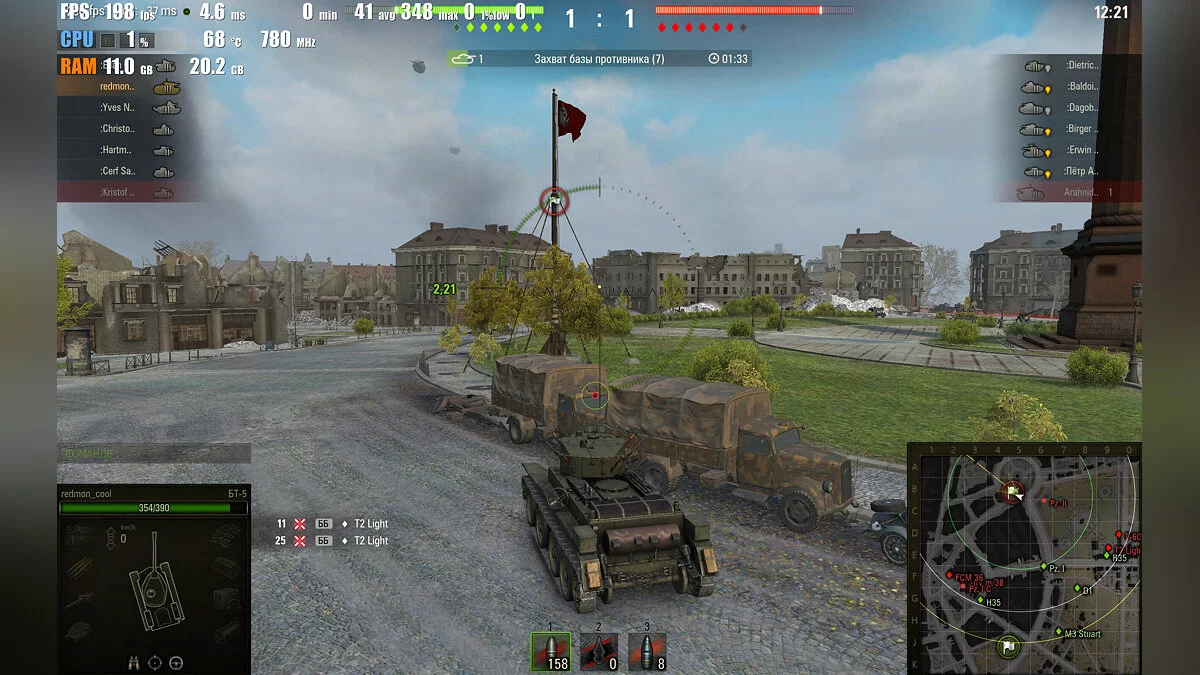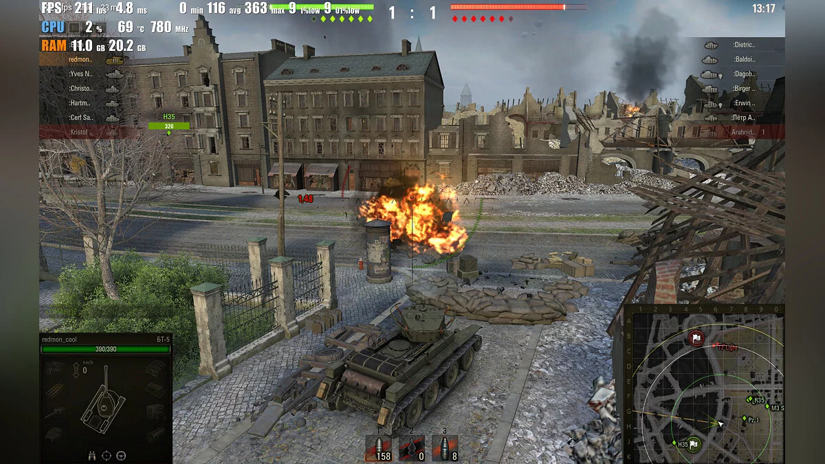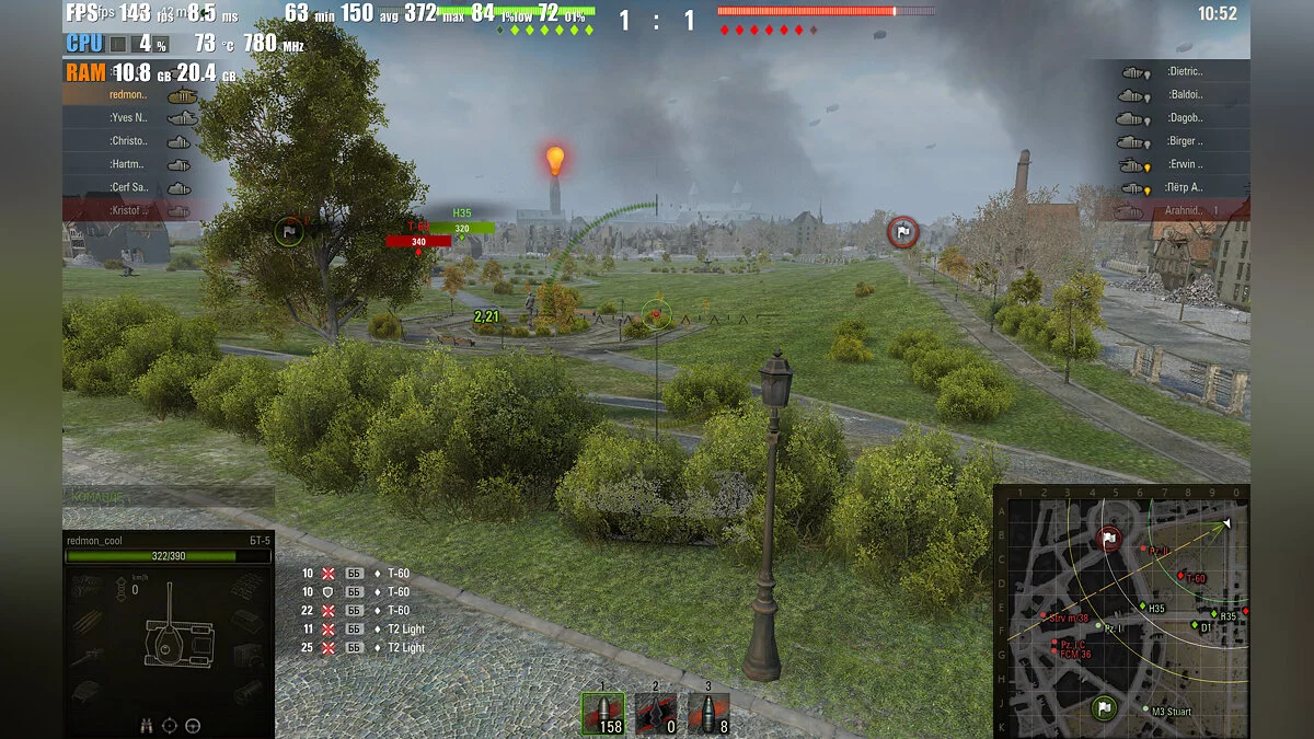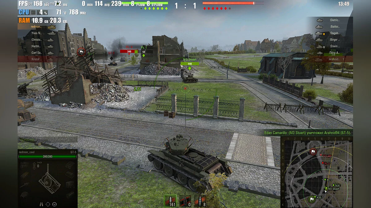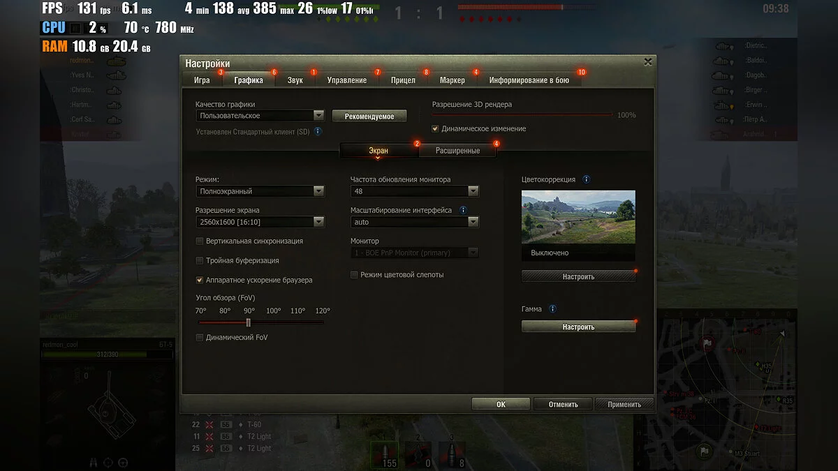 «Мир танков». С этой игрой без проблем справляются почти все современные ноутбуки, и MagicBook X16 Plus не стал исключением. FPS иной раз поднимался до 250 кадров, но среднее значение — 150. В любом случае — и это хорошие показатели. Температура процессора варьировалась от 68 до 79 градусов. Вывод — играть можно.