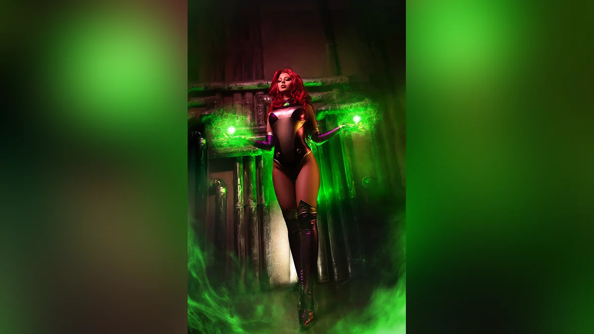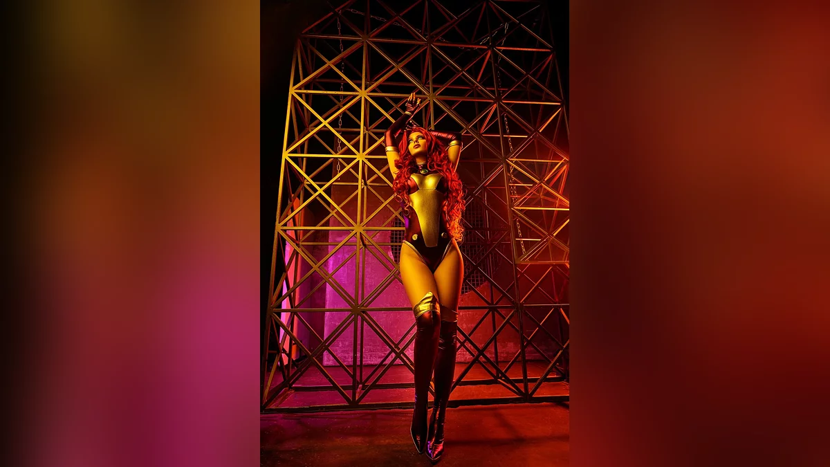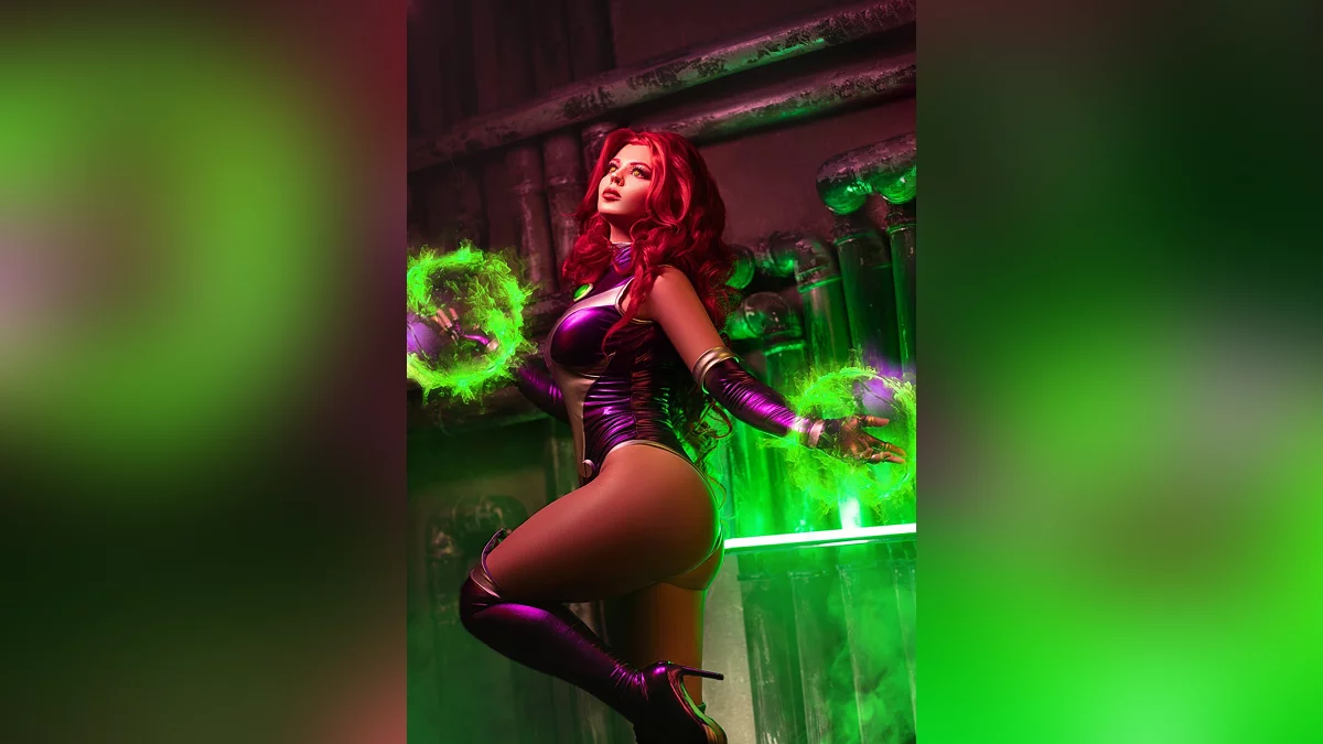 Спочатку планувалося провести спільний фотосет з моєю подругою Алізою, у якої є костюм Рейвен. У процесі підготовки я читала комікси з участю моєї героїні Старфайр, прониклася її трагічною долею. Її костюми відрізняються в залежності від художника, але я зупинилася на тому варіанті, який мені здався найкрасивішим, з рукавичками, чоботами та ефектним боді.