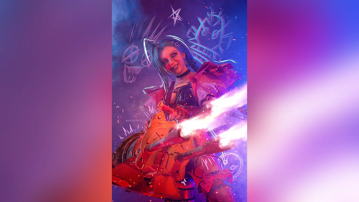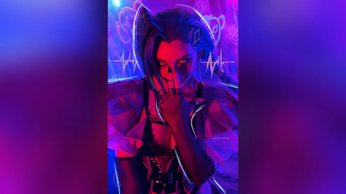 Вихід другого сезону мультсеріалу «Аркейн» (Arcane) — одна з головних подій листопада. Не дивно, що багато косплеєрів вирішили повернутися до образів Паудер, Вай та Кейтлін. Наприклад, АGflower звернулася до амплуа божевільної злочинниці з Пілтовера, відомої як Джинкс. Костюм заснований на відомому арті від Princess Ailish.