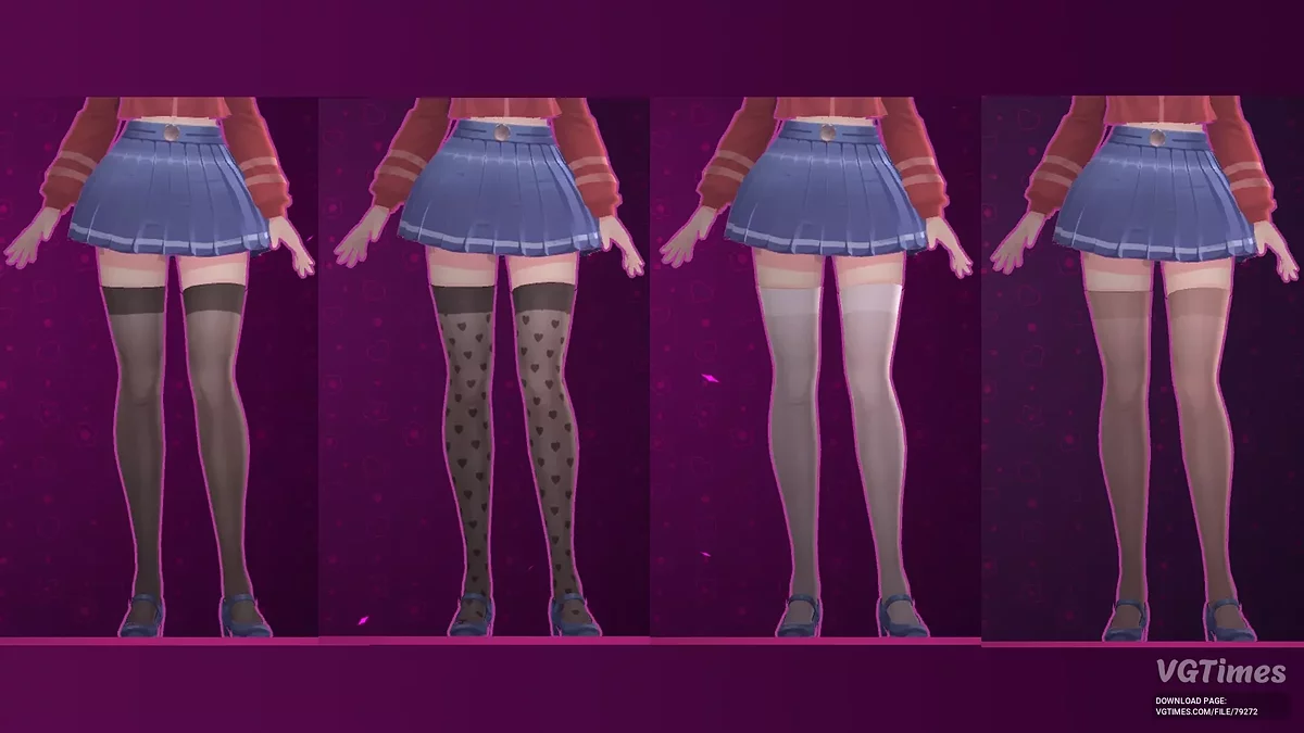 Багато хлопців відчувають особливі почуття при виді жіночих ніг у красивих колготках. За допомогою модифікації можна додати цей предмет у гардероб Міти. На вибір надаються чотири варіанти.