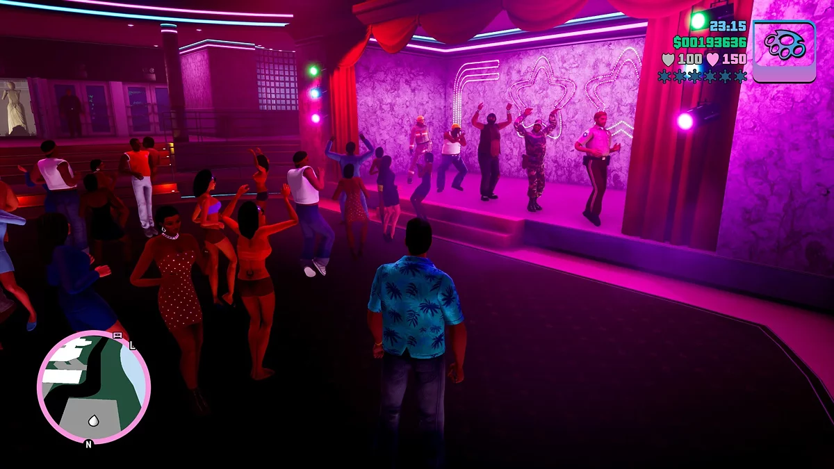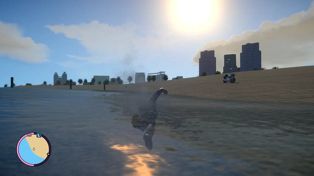 Будівлі, освітлення та геометрія міста зазнали масштабної переробки. Не переживайте, відвертого «колгоспу» в модифікації немає. Вайс-Сіті виглядає рівно так, як і 23 роки тому. Текстури високої роздільної здатності та об'ємне світло оживили знакові місця. Ocean Drive з неоновими вивісками виглядає чудово. Вид з причалу Ocean Bay Marina захоплює дух. Нова система освітлення з увімкненим ENB робить атмосферу гри більш живою. Особливо красиво місто виглядає ввечері, коли неон поєднується з теплими тонами неба.