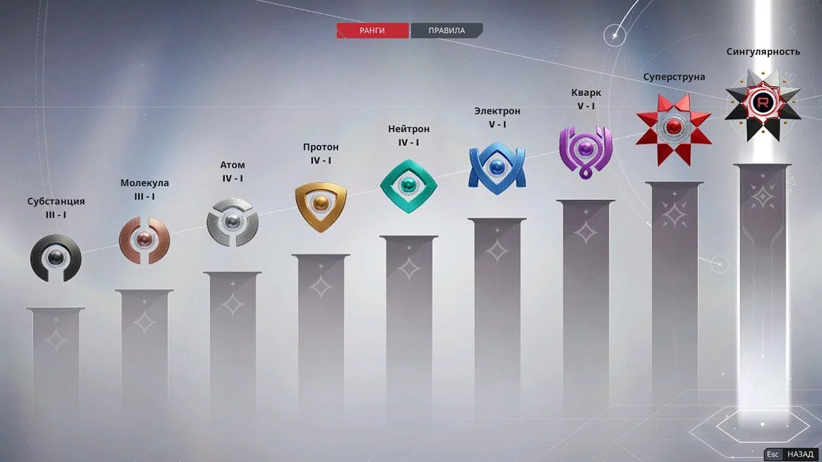У рейтинговому режимі спочатку потрібно пройти калібрування з 5 матчів, після чого ви отримаєте ранг. Рангів, до речі, в Strinova 9, як і в Valorant, але на відміну від нього, назви рангів (принаймні в російській локалізації) дещо дивні, а ще кількість ступенів у рангів в Strinova варіюється.