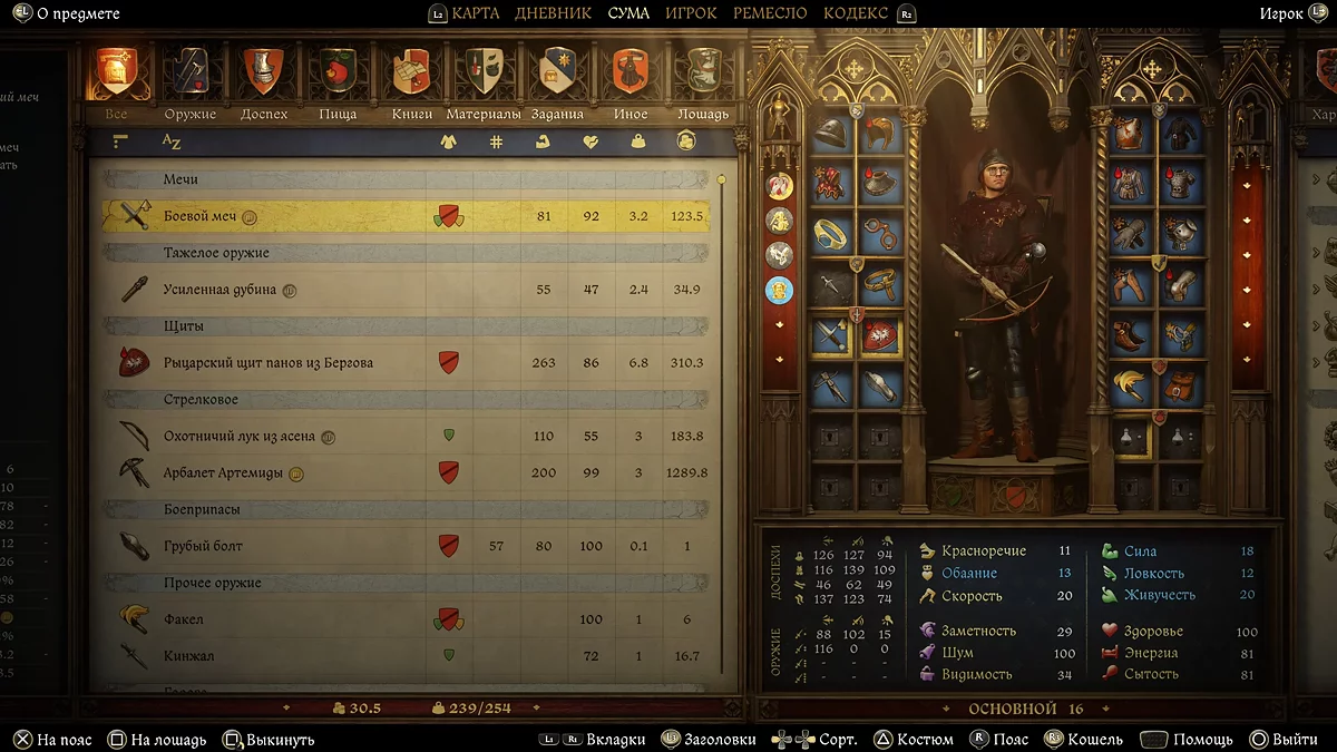 У Kingdom Come: Deliverance 2 цю систему проапгрейдили до зовсім іншого рівня. Купити спорядження потрібно трьох різних видів — для бою, розмов і стелсу. При цьому в кожній групі характеристик є свої додаткові стати. Що вам буде важливіше — безшумність чи непомітність?