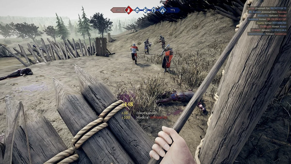 Mordhau — мультиплеєрний слешер з акцентом на масові битви. Сутички тут швидкі і динамічні, але їх принципи схожі з KCD. Володіння мечем — це не просто «закликування» ворогів до смерті, а ціле мистецтво. Фішка словенської студії Triternion — унікальна система фехтування, де кожен удар модифікується за рахунок рухів миші, дозволяючи створювати складні комбінації та обманні прийоми. Є й вражаючий арсенал середньовічної зброї — від класичних мечів і сокир до екзотичних алебард і цвайхандерів. Кожен тип зброї має власну механіку і вимагає часу на освоєння.