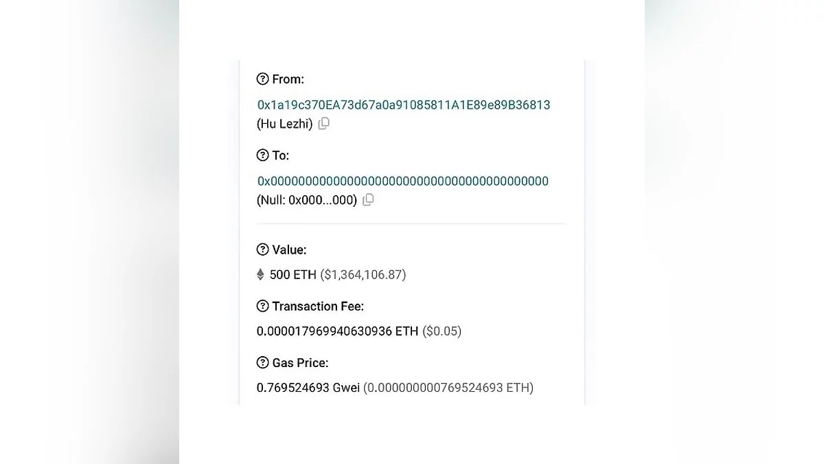 Невідомий користувач перевів 591 ETH ($1.627.986) на адресу 0x0....000. Цей гаманець не контролюється жодною особою або організацією, тому після транзакції ніхто не зможе вивести ці гроші. Іншими словами, величезна сума виявилася просто спалена. Причому це далеко не єдиний подібний випадок. Були й інші перекази, наприклад, у 130 ETH (363,6 тисяч доларів). Єдине пояснення таких дій — спроба людей привернути до себе увагу. А раз ми про це пишемо, то вони досягли своєї мети.