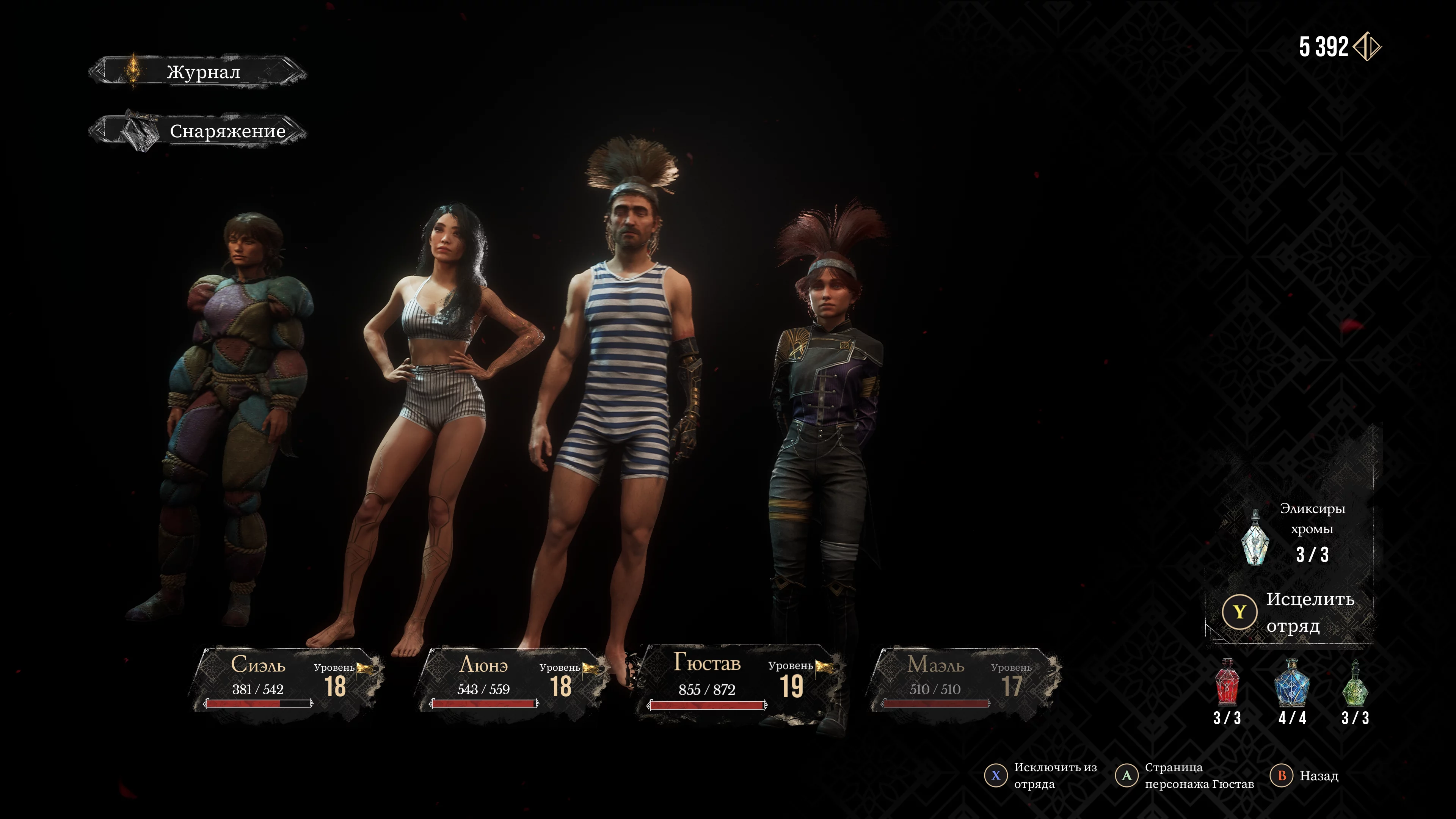 У кожного з членів експедиції є основні характеристики, дуже схожі на стати з проекту souls-like. Їх ви можете качати як хочете, однак повинні враховувати, яке з озброєнь найкращим чином стакається від тієї чи іншої характеристики. Припустимо, у мечі стоїть буква «С» поруч з витривалістю. Це означає, що високий параметр витривалості посилить меч, і навпаки — низький сильно зменшить його потенціал. Звичайно, спорядження буде досить багато, а тому стати доведеться не раз перескладати (не стосується низького і середнього рівня складності).
