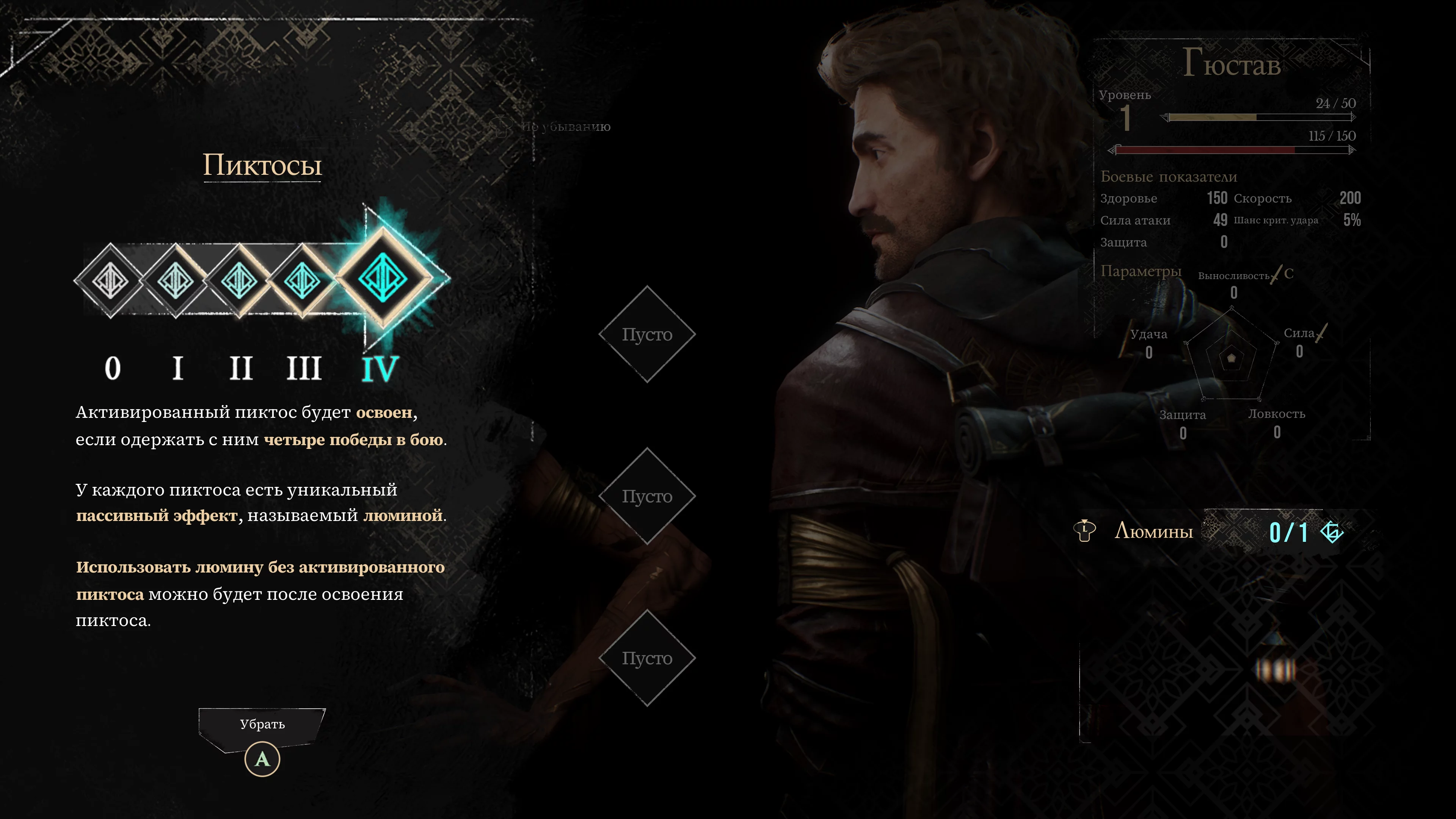 Третім стовпом виступають піктоси і люміни. Піктоси — бафи, які можна вибрати в кількості трьох штук. Якщо виграли чотири бої — пікто вважається вивченим, після чого його можна перенести в розділ люмін. Це ті ж самі бафи, але купуються за очки люміни в необмеженій кількості. Вільні очки збільшуються з ростом рівня, а також після знаходження їх у затишних куточках. Таким чином ви легко розширите базові можливості персонажа, подарувавши йому, наприклад, подвійну базову атаку, підвищений шкоду і багато чого ще. Орієнтуватися у всьому цьому різноманітті доведеться, адже вершиною Clair Obscur: Expedition 33 є сама бойова система.