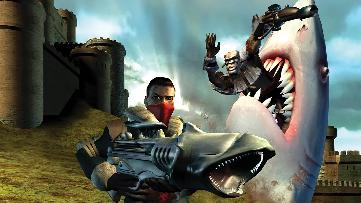 Ця зброя стріляє акулами. Не кулями, не ракетами — саме акулами. Вони прокладають шлях під землею, а потім виринають і пожирають ворогів. Анімація цього процесу настільки абсурдна, що важко стримати сміх.