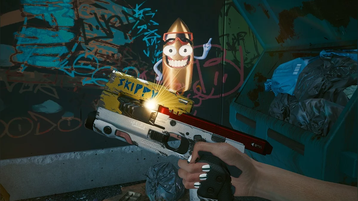 1. Скіппі (Cyberpunk 2077) — пістолет з почуттям гумору