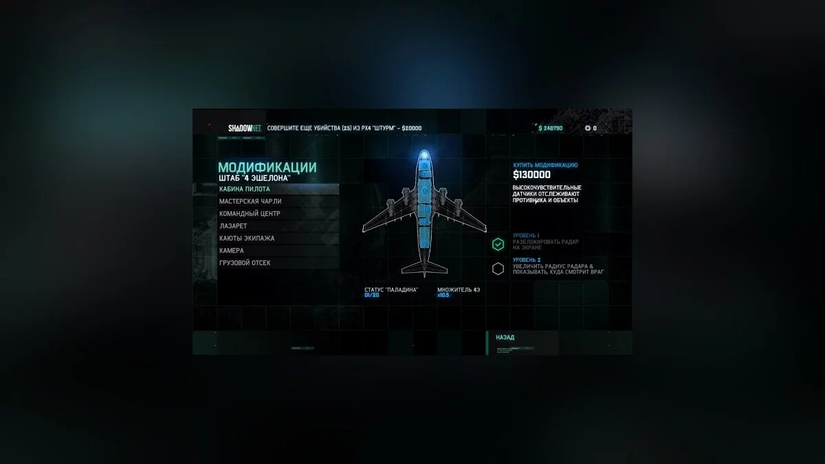 В нашем самолете также можно много чего изменить с помощью прокачки разных отсеков. То есть если прокачать кабину, то ваш радар сможет видеть врагов в большем радиусе, если проапгрейдить багажный отсек, то можно будет возить с собой больше боевой техники и т.д. и т.п.