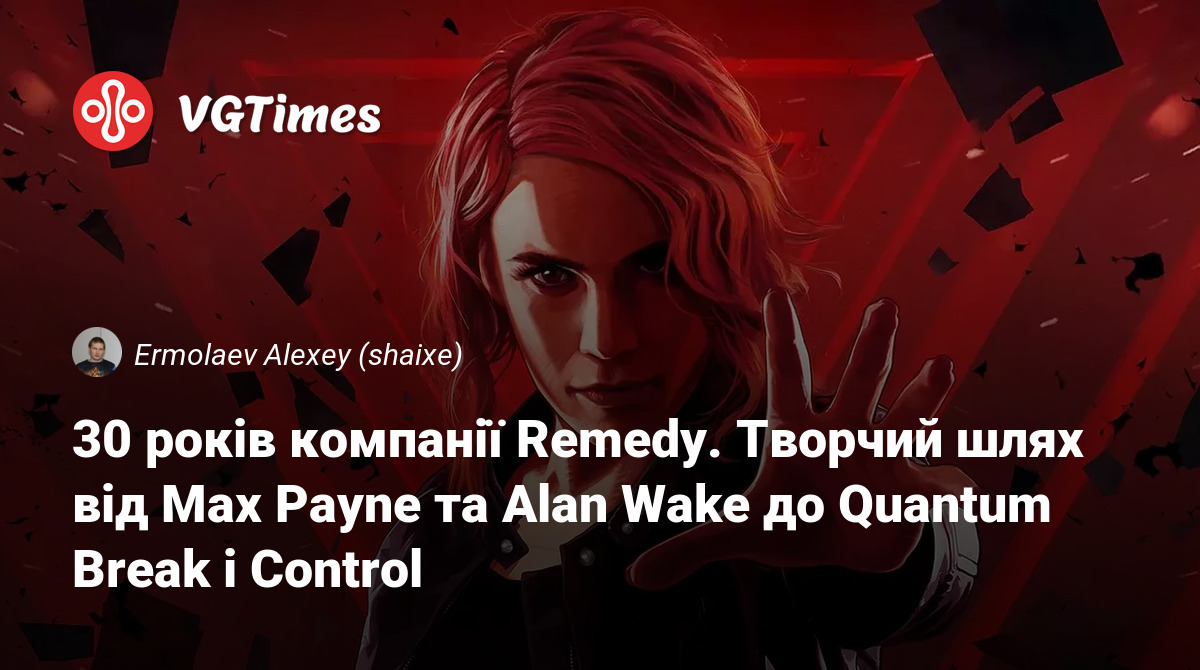 30 років компанії Remedy. Творчий шлях від Max Payne та Alan Wake до Quantum Break і Control