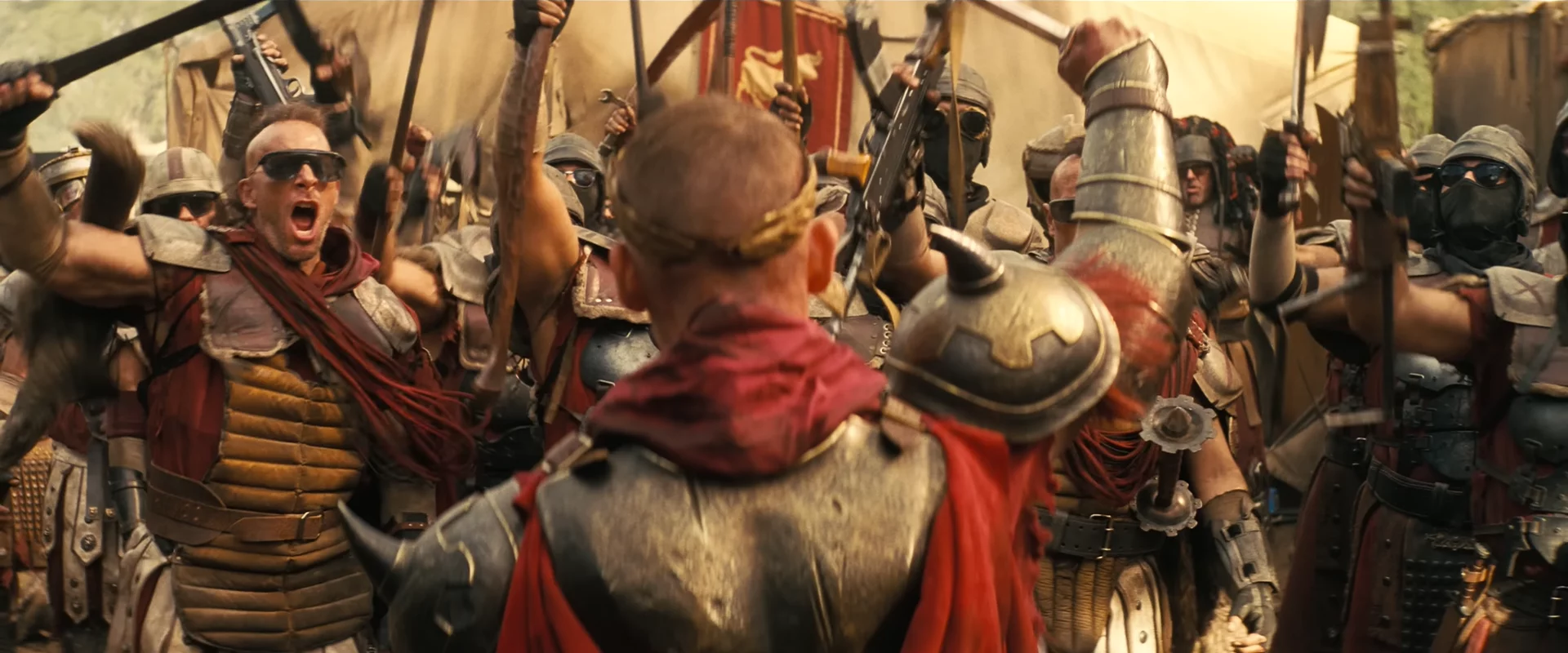 Особливо цікавий кадр на 1:22, де легіонери салютують своєму командиру. Обличчя полководця ми не бачимо, але, судячи з обладунків, в які він облачився, це легат Ланій — права рука Цезаря і друга особа у всій фракції. А може, і перша: якщо Цезар гине в Fallout: New Vegas, то саме Ланій стає новим головнокомандувачем усієї армії. Не можна, правда, виключати, що в трейлері ми бачимо зовсім іншу персонажа — нового легата, просто в тих же обладунках.