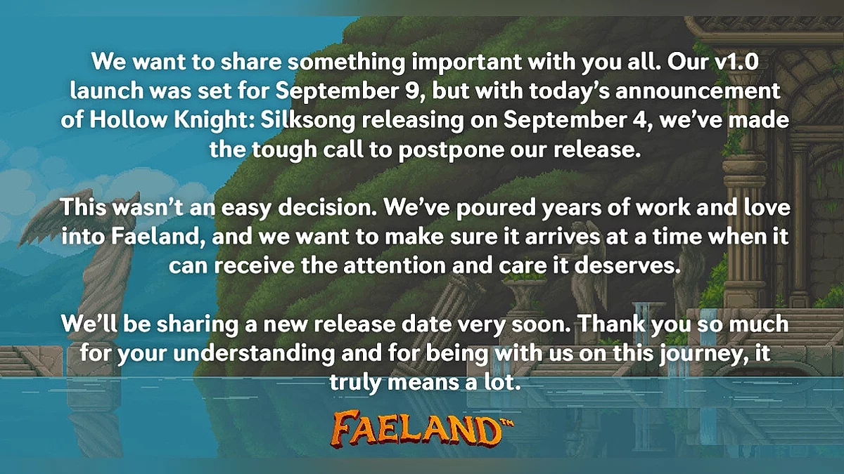 Це було непросте рішення. Ми вклали роки праці та любові в створення Faeland і хочемо бути впевненими, що він з'явиться в той час, коли зможе отримати ту увагу і турботу, яких заслуговує.