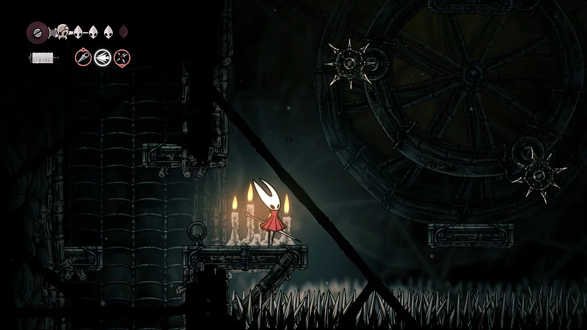 Неймовірно дратує. Крива складності виглядає як стіна: гра стартує з того рівня складності, на якому закінчилася Hollow Knight. Тільки от ти граєш не за добре екіпірованого персонажа з прокачаною голкою, додатковими масками та безліччю амулетів, а за базового героя з п’ятьма масками та незручним ударом вниз, проти ворогів, які завдають подвійний шкоди.