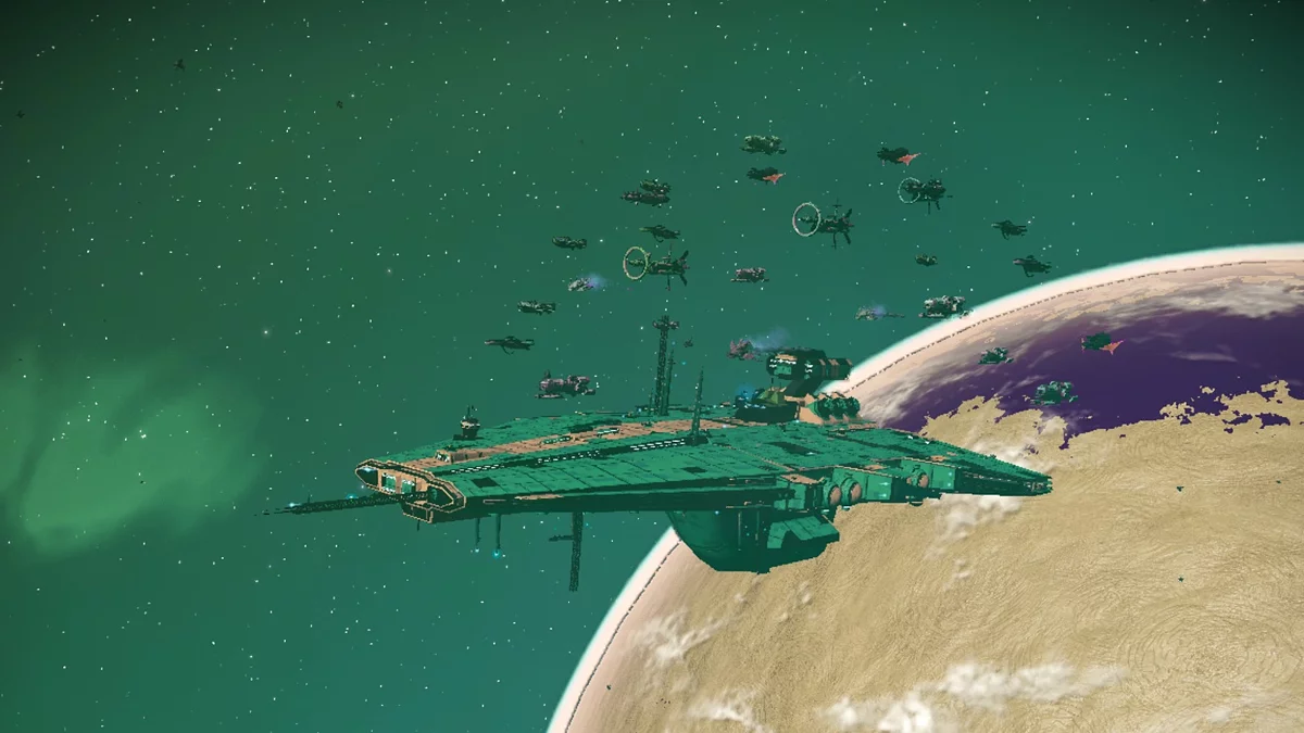 Окрема велика частина гри — створення космічних літальних засобів. Зіркові кораблі можна було створювати і раніше, а після останнього великого оновлення гра дозволяє будувати корвети — великі кораблі, всередині яких можна походити (як у якійсь Starfield), облаштувати, здійснити вихід в відкритий космос і навіть стрибнути з орбіти на поверхню планети. Заворожуюче видовище, скажу я вам. Окрім зовнішньої краси, ці можливості впливають і на сам геймплей. Це такий міні-грузовий корабель, масштаби і можливості, звичайно, не такі, але багато моментів досить схожі.