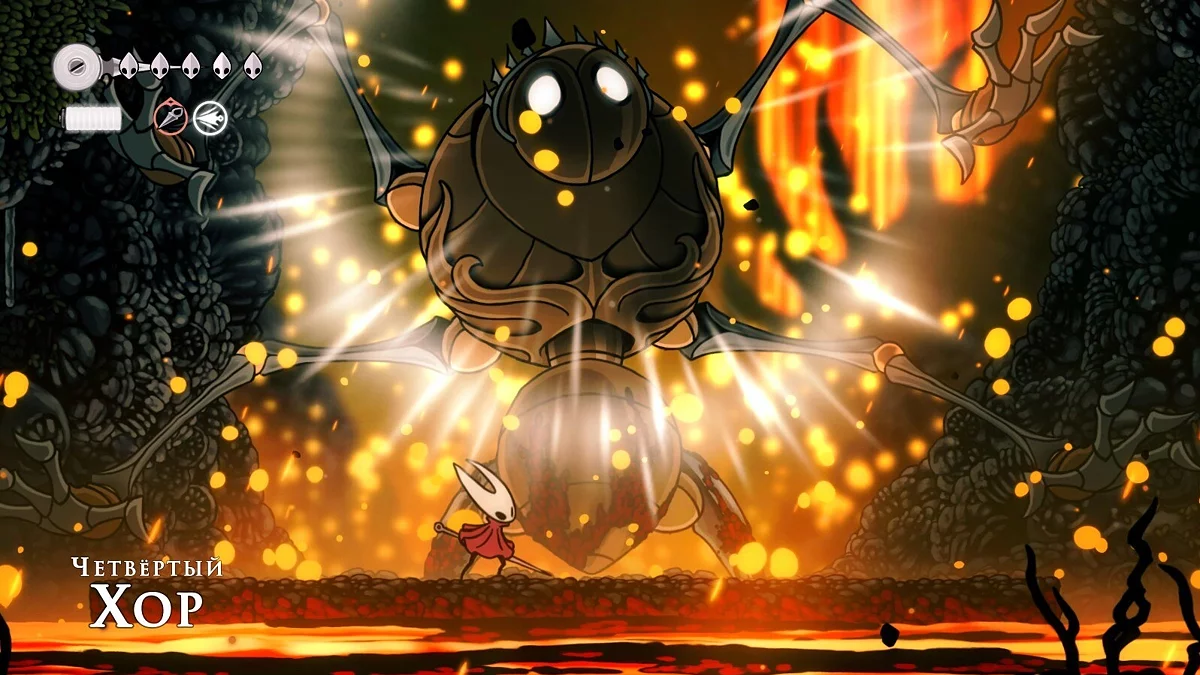 «Боси» — я дуже люблю більшість босів у Hollow Knight за їхній дизайн і унікальну музику. Моими улюбленими босами в оригіналі стали Гримм, Розбитий посуд, Чистий посуд, Король кошмарів, Хорнет (друга зустріч), Лорди-богомоли і, звичайно ж, Лучезарність. У Silksong босів стало більше, особливо міні-босів. Вони не поступаються за дизайном, але я не можу сказати, що стали кращими — скоріше, стоять на одному рівні за якістю.