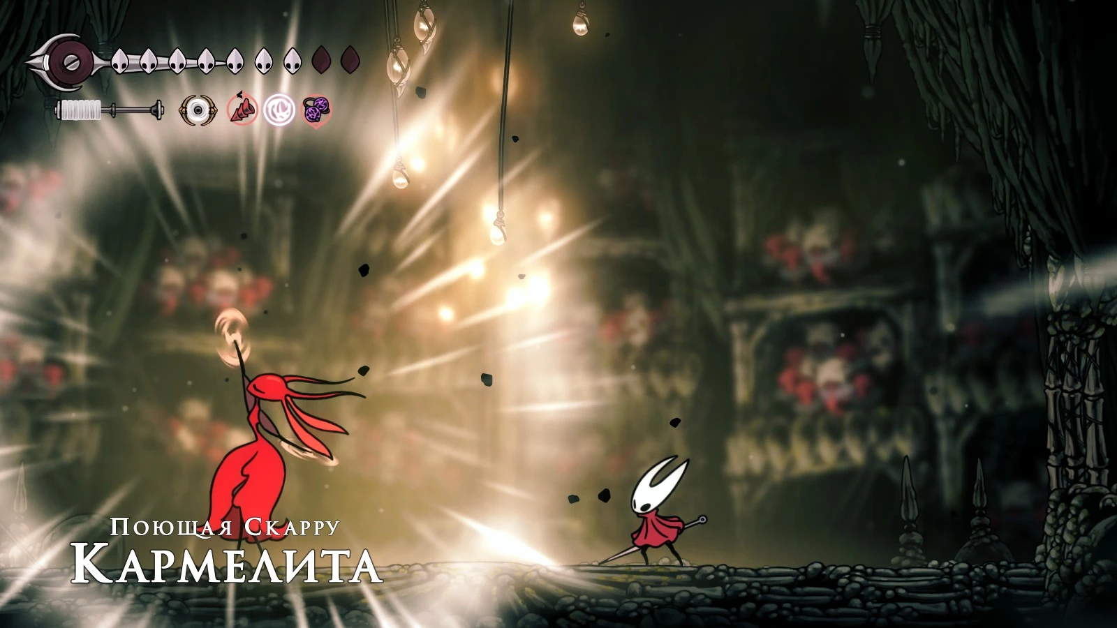 Співаюча Скарра Кармеліта — найкращий бос з трійки. Вона — мурашина королева, яка прекрасно співає. Перед її битвою потрібно відбитися від маленької хвилі мурах, а сама сутичка схожа на танець, що робить її запам'ятовуваною та видовищною. Її дизайн і музика бою — окремий витвір мистецтва, особливо прекрасно синхронізоване спів з музикою. На неї у мене пішло найбільше спроб з усіх трьох, і вона заслуговує на всю мою любов.