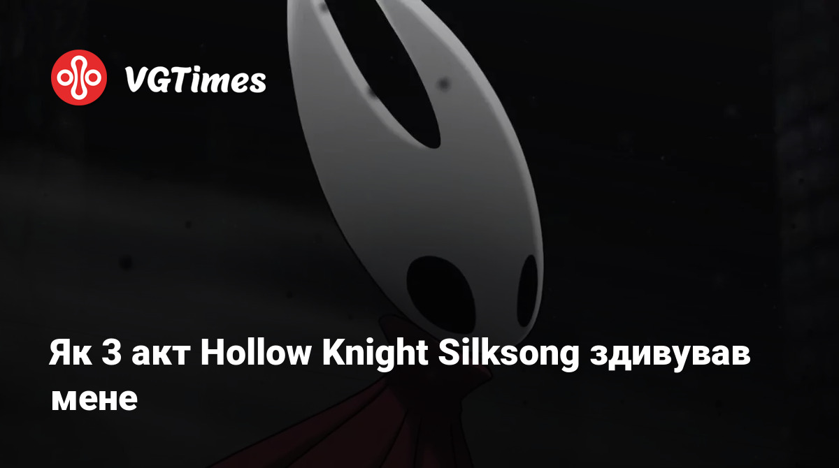 Для мене третій акт — немов окрема гра, через що він став моєю найулюбленішою частиною Hollow Knight: Silksong. В першу чергу мене вразила атмосфера кінця світу, коли здавалося, що доля Фарлума приречена. Особливо сподобалася механіка чорних ниток, які захоплюють усіх жителів Фарлума, роблячи їх сильнішими і чорними. Враховуючи попередні акти, на проходження істинної кінцівки у мене пішло трохи більше 70 годин, адже я люблю досліджувати світ, особливо в його зміненому вигляді після захоплення чорними нитками, а також виконувати побічні квести. Гра дійсно помітно більша за першу частину як за картою, так і за наповненням контентом.