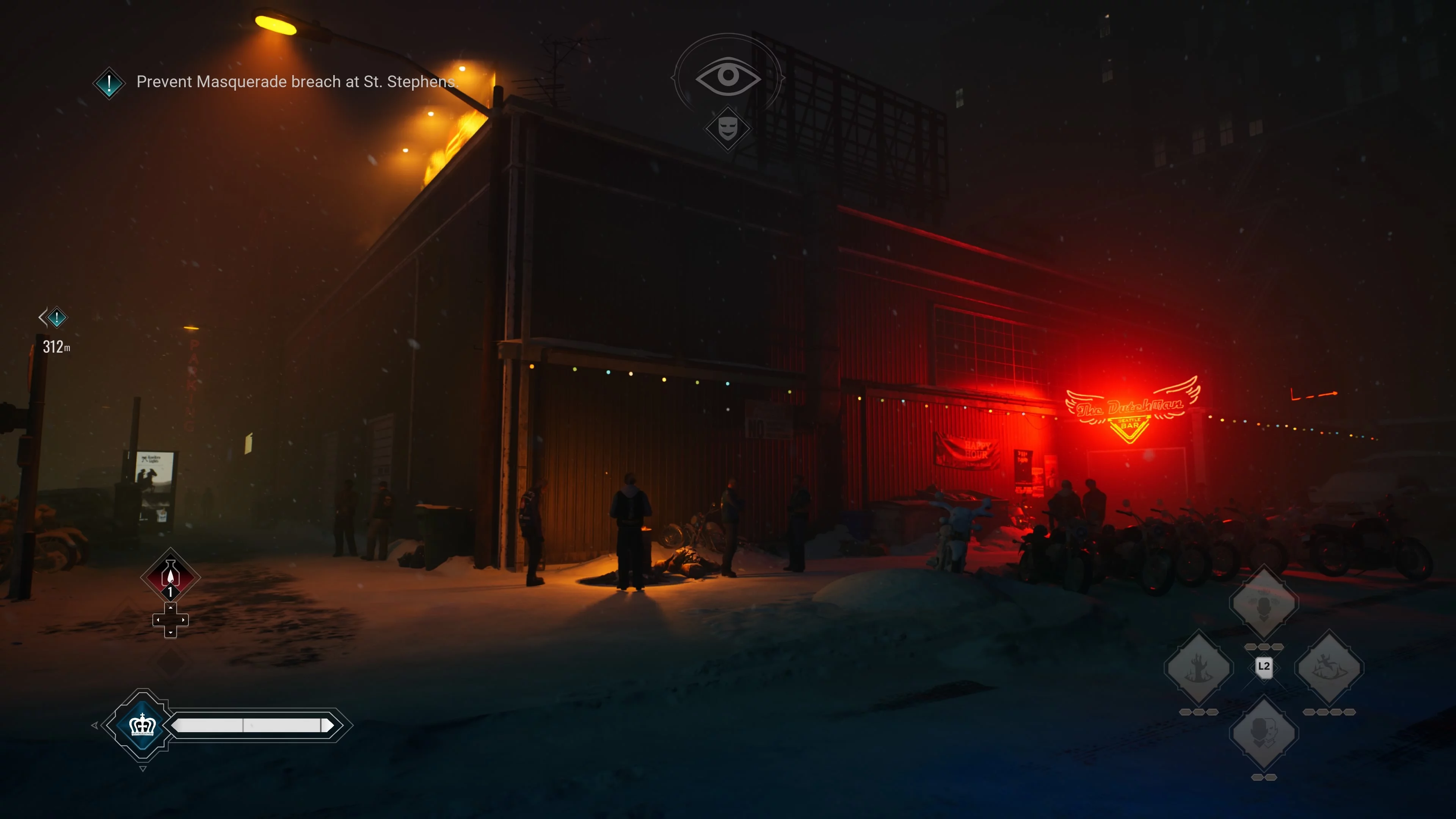 Відчуття, що десь щось автори не довели до ладу, в Bloodlines 2 нахлинює частіше, ніж хотілося б. Рівень якості непостійний: наприклад, основні персонажі виглядають відмінно з точки зору графіки, а другорядні — відверто погано. У грі багато дрібних багів, продуктивність на PS5 залишає бажати кращого, а окремі механіки і концепції не продумані в повній мірі. Шкала порушення Маскарада, при повному заповненні якої герой автоматично помирає, ніби додана чисто для галочки. Тут одразу варто зазначити, що катастрофічних проблем у Bloodlines 2 немає — це, на щастя, не перша частина на релізі. Але все ж дрібні подразники накопичуються і дають про себе знати.