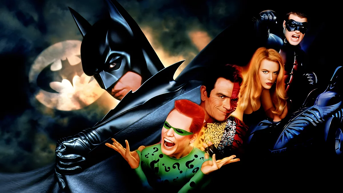 Перший фільм Джоела Шумахера (Joel Schumacher) про Бетмена виявився не таким поганим, як другий, про який ми розповіли вище. Це теж дивна комедія, де Двуликий у виконанні Томмі Лі Джонса (Tommy Lee Jones) поводиться як Джокер, а Джим Керрі (Jim Carrey) у ролі Загадочника відверто сходить з розуму. Але тут є кілька кумедних моментів і приємна атмосфера веселого кінокоміксу.