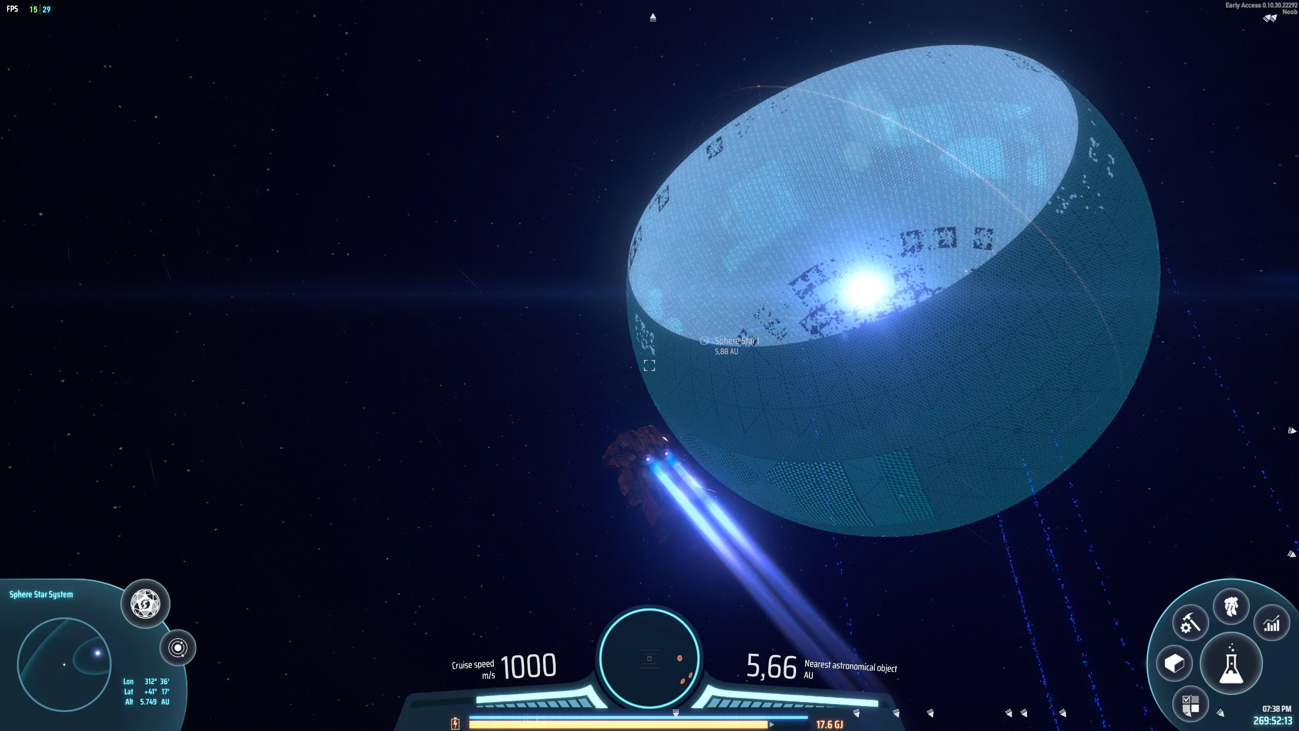 Побудувати шар сфери — кульмінація. Коли я запустив перші каркасні шатли і сонячні панелі до зірки, я просто дивився. Виникло відчуття якоїсь кульмінації: ти пройшов весь шлях, і тепер просто насолоджуєшся результатом. Але будівництво продовжувалося. Пройшло ще 6 годин. І ще 12. Коли ж це закінчиться?! Я залишав гру включеною і йшов по своїх справах, лише б панелі далі стикувалися на орбіті. І поступово захоплення змінилося рутиною: побудуй, перетягни, додай руди. Побудуй, перетягни…