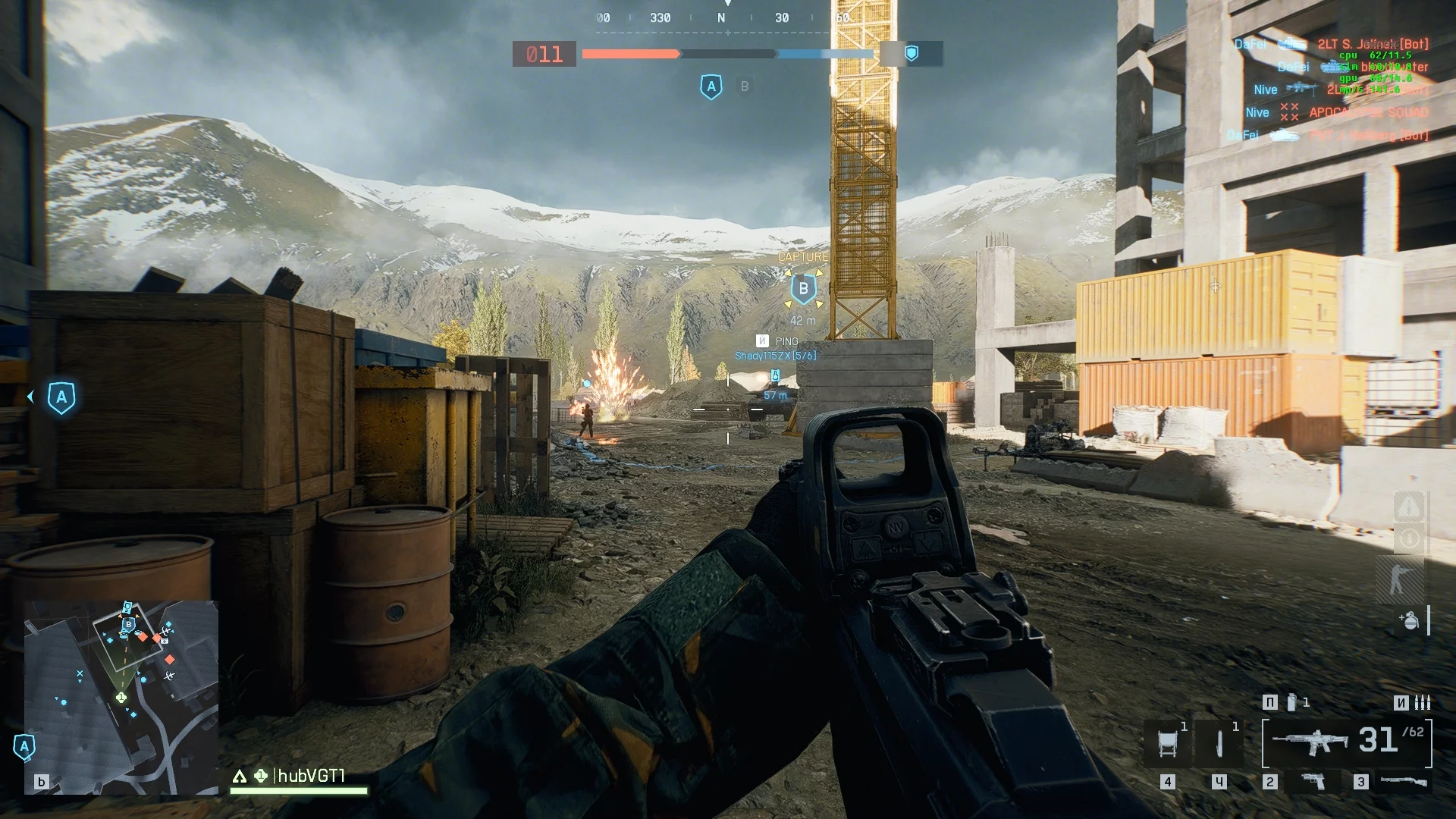 Як вже згадувалося, система переміщення явно створювалася з оглядкою на Call of Duty. Піхота швидко рухається по карті і має можливість робити підкати, бігати в напівприсядь, а також кінематографічно витягувати поранених з-під вогню. Контроль персонажа дуже зручний. Через підвищену динаміку, особливо на фоні попередніх частин, рух у Battlefield 6 — запорука виживання. Стояти і прицілюватися в когось з укриття, як це було раніше, вже не вийде. На невеликих картах цілі натовпи гравців мчать, не зважаючи на все, і найчастіше стріляють з ходу, щоб хоч якось компенсувати недоліки системи ADS.