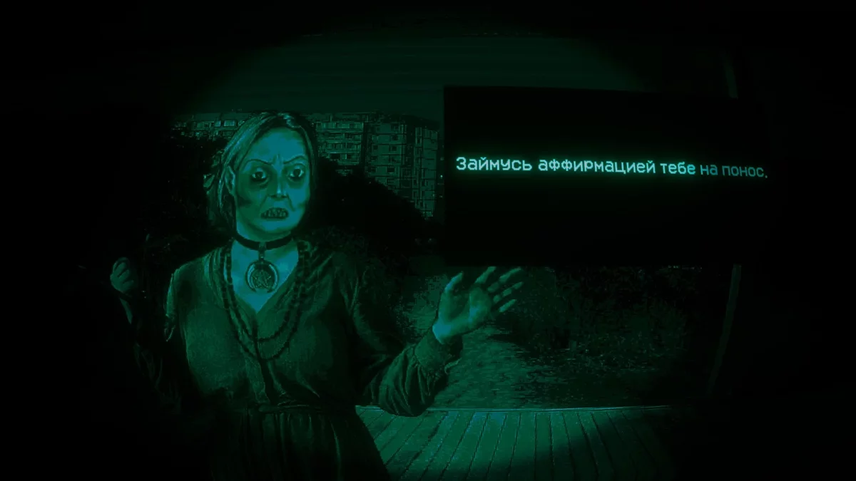 Нікіта: Цю істоту гравець міг побачити у вікні в один з днів. За це, до речі, дають ачивку. Також про неї розповідає досить детально персонаж, який позбавив себе зору. Хочеться, звичайно, більше про неї розповісти в оновленні, тому я з командою ще подумаю над цією ідеєю. Крім того, є кілька ютуберів, які досить близько підійшли до трактування значення цієї істоти.