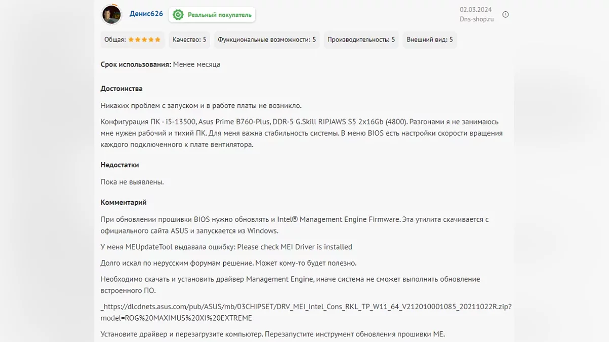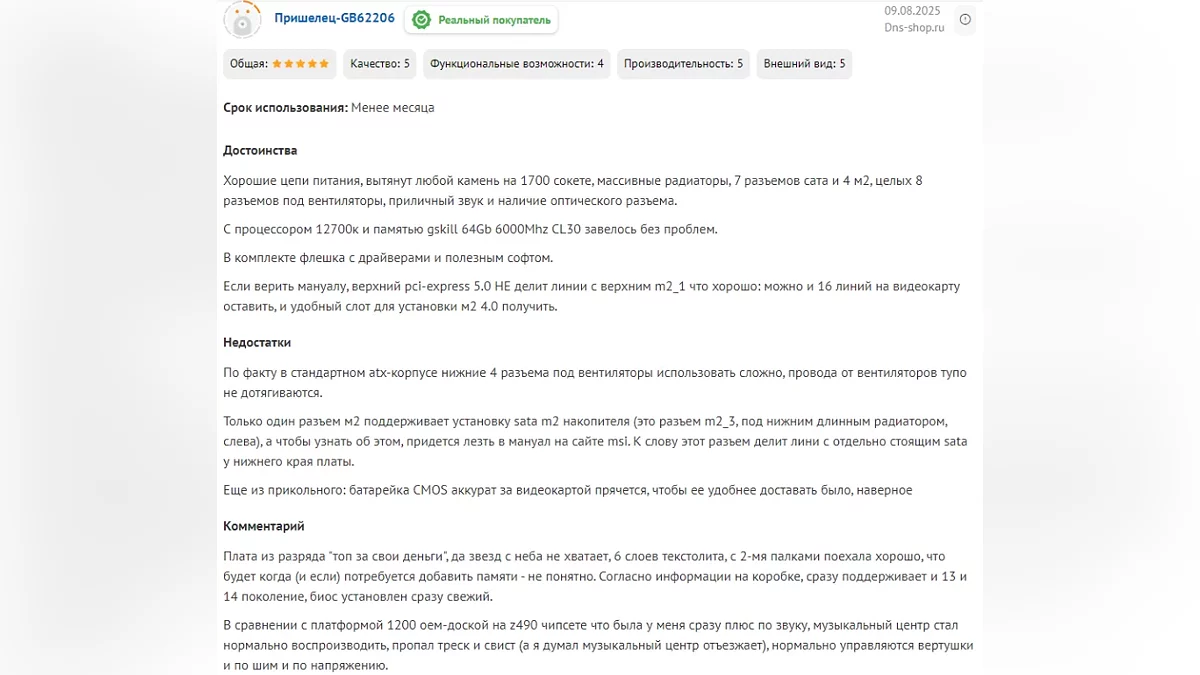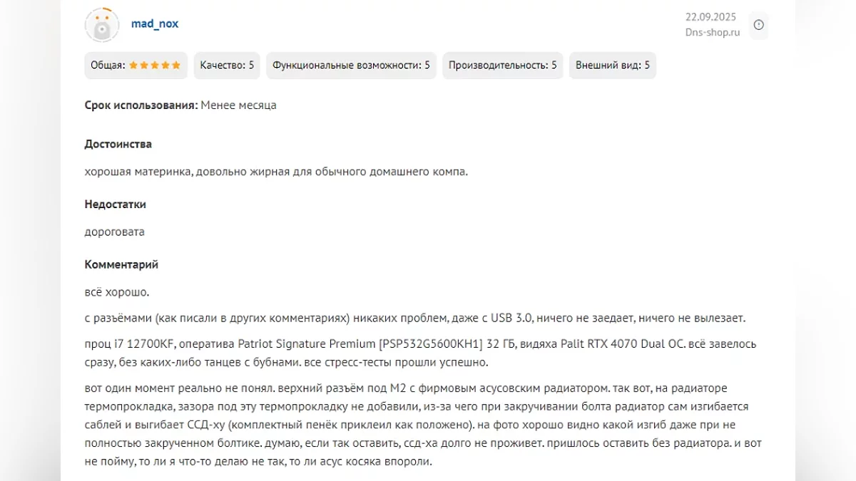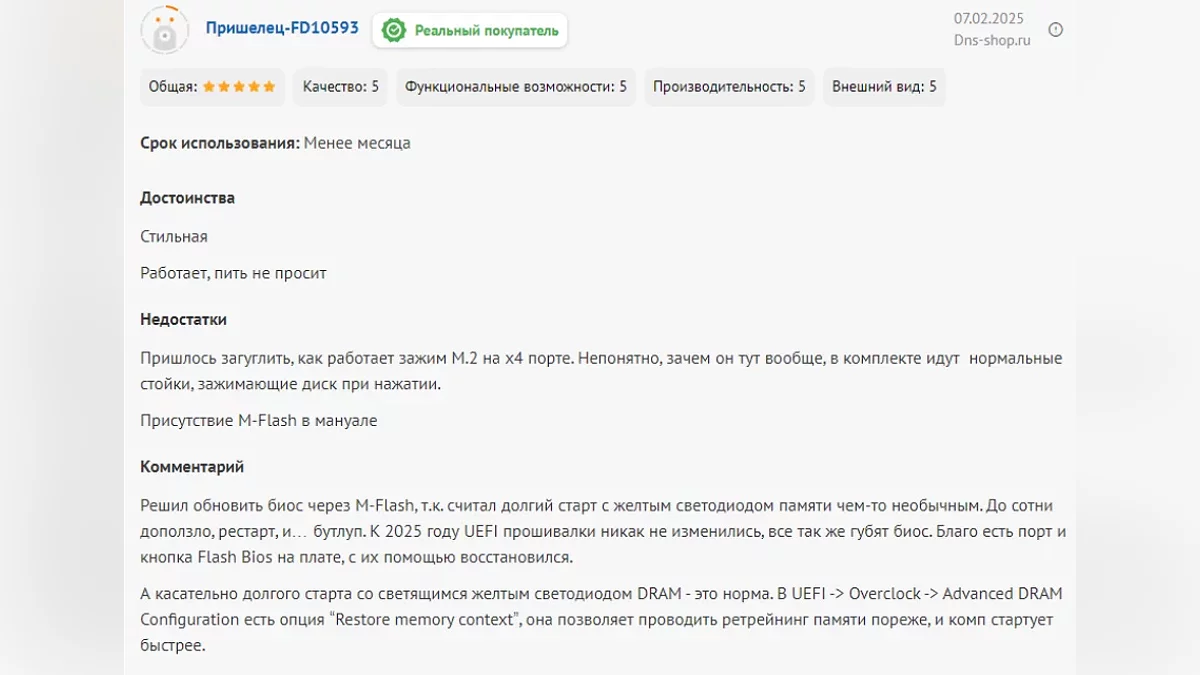 - Можливі складнощі з сумісністю «з коробки». У деяких користувачів виникають проблеми з POST/DRAM (планки пам'яті або процесор можуть не стартувати до оновлення BIOS);