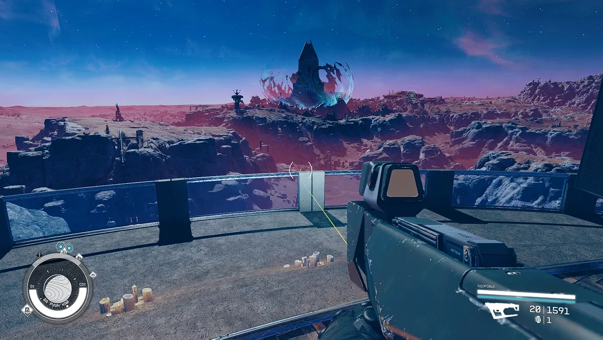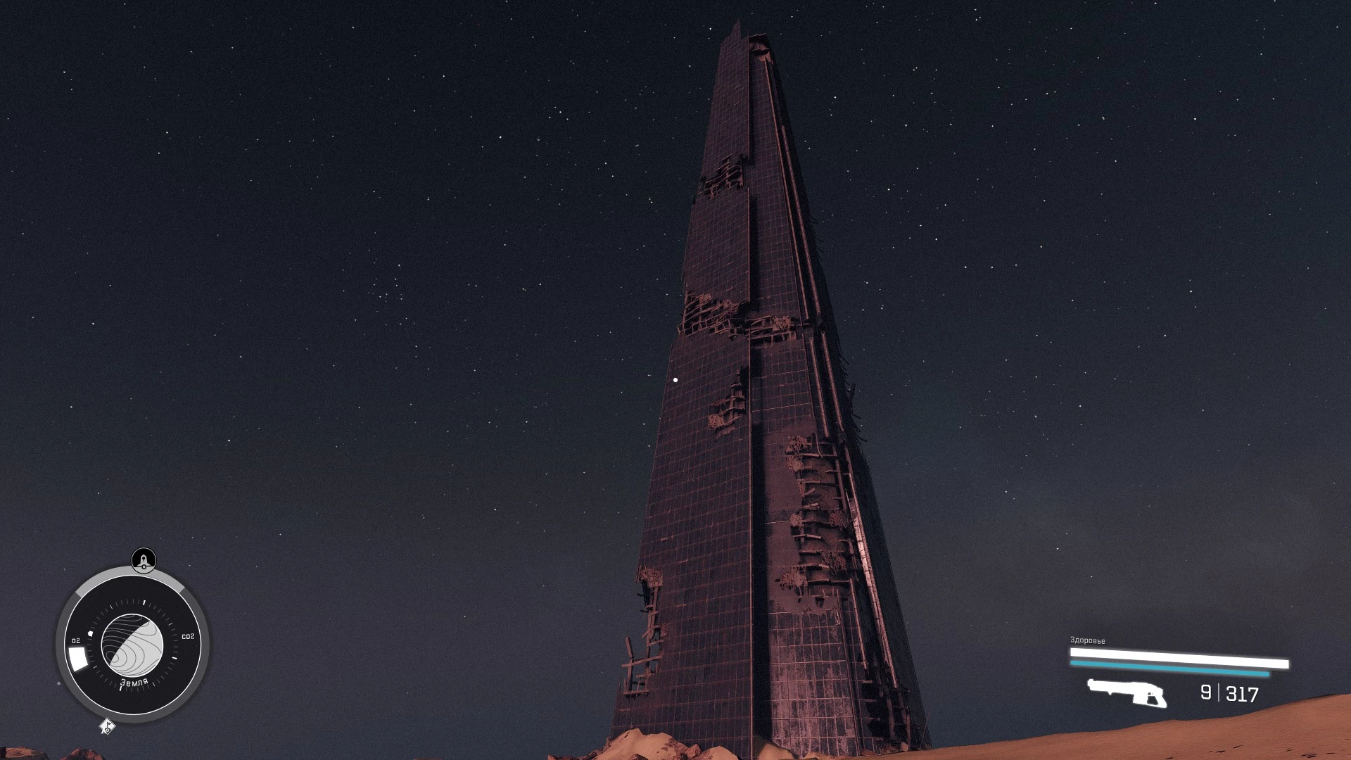 Для початку заглибимося трохи в те, чим захоплювала Bethesda гравців своїми, не побоюсь цього слова, легендарними серіями Fallout і The Elder Scrolls, які і зараз утримують увагу тисяч і тисяч гравців, спостерігаючи багато років після виходу ігор. Для цього явища існує навіть поняття «магія Bethesda». Важко максимально ємко описати це поняття, але головні її складові — «живість» ігрового світу, де за кожним кутом очікувалося чогось нового і несподіваного, цікавий сюжет і безліч другорядних квестів, величезна увага до деталей, яскраві та запам'ятовувані ігрові персонажі, та просто величезна любов розробників до того, що вони створюють. Тим, хто засиджувався в Скайримі або Фоллауті до ранку, не треба зайвий раз пояснювати, що це. Що ж ми маємо тут? Ігровий світ — так, величезний, тут не посперечаєшся. Але процедурна генерація величезної кількості контенту зовсім не робить його «живим» — після того, як гравець помічає, що на, здавалося б (за логікою), різних локаціях на різних планетах навіть надкушені бутерброди лежать в одних і тих же місцях, починають закрадатися неприємні передчуття. Коли ми спускаємося на практично будь-яку планету в довільній точці, нас, як правило, в околицях очікує з десяток завідомо процедурно-сгенерованих локацій, які в межах конкретного шаблону не відрізняються нічим, аж до цих пресловутих бутербродів. І якщо закінчити своє ознайомлення з грою на цьому етапі, враження залишаться зовсім пригніченими. Але насправді в грі є дуже багато і «ручного», так би мовити, контенту, пов'язаного в першу чергу з сюжетною лінією і особливо другорядними квестами. Але до нього не так вже й просто дістатися, і тут виявляється ще одна фундаментальна проблема гри — надмірна масштабність. Контент є, і його багато. Я провів у грі більше 300 годин, і можу це стверджувати відповідально. Але він так «розмазаний» тонким шаром по тілу гри, що добиратися до нього для багатьох стає просто нудно. У мене часто виникало питання — навіщо? Навіщо робити 1000 планет, якщо все це можна було спокійно вмістити в 2-3 зоряні системи з десятком-другим планет, збільшити щільність контенту в рази, якщо не на порядки, і утримати інтерес більшості гравців? Обідно було дивитися на неймовірно ретельно відтворені інтер'єри локацій, коли знаєш, що рівно те ж саме, ось міліметр в міліметр, попадеться на якійсь іншій планеті. Все це в сукупності і обумовлює те, що «живість» Старфілда в цілому і поруч не стоїть з Фоллаутом і Скайримом, наприклад. Її занадто складно відчути в грі такого величезного масштабу, і далеко не кожному гравцеві вистачить терпіння і інтересу пройти цей шлях.