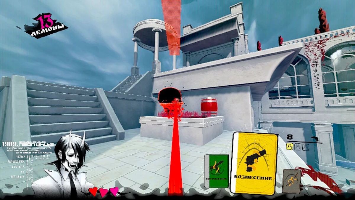 В Neon White реализована система карт, которая используется вместо оружия и бонусов для перемещения. У игроков всегда есть выбор: активировать карту для убийства противника или применить ее для быстрого преодоления препятствия. Скоростной темп проекта и необычные акробатические элементы, завязанные на физике, делают геймплей динамичным и уникальным.