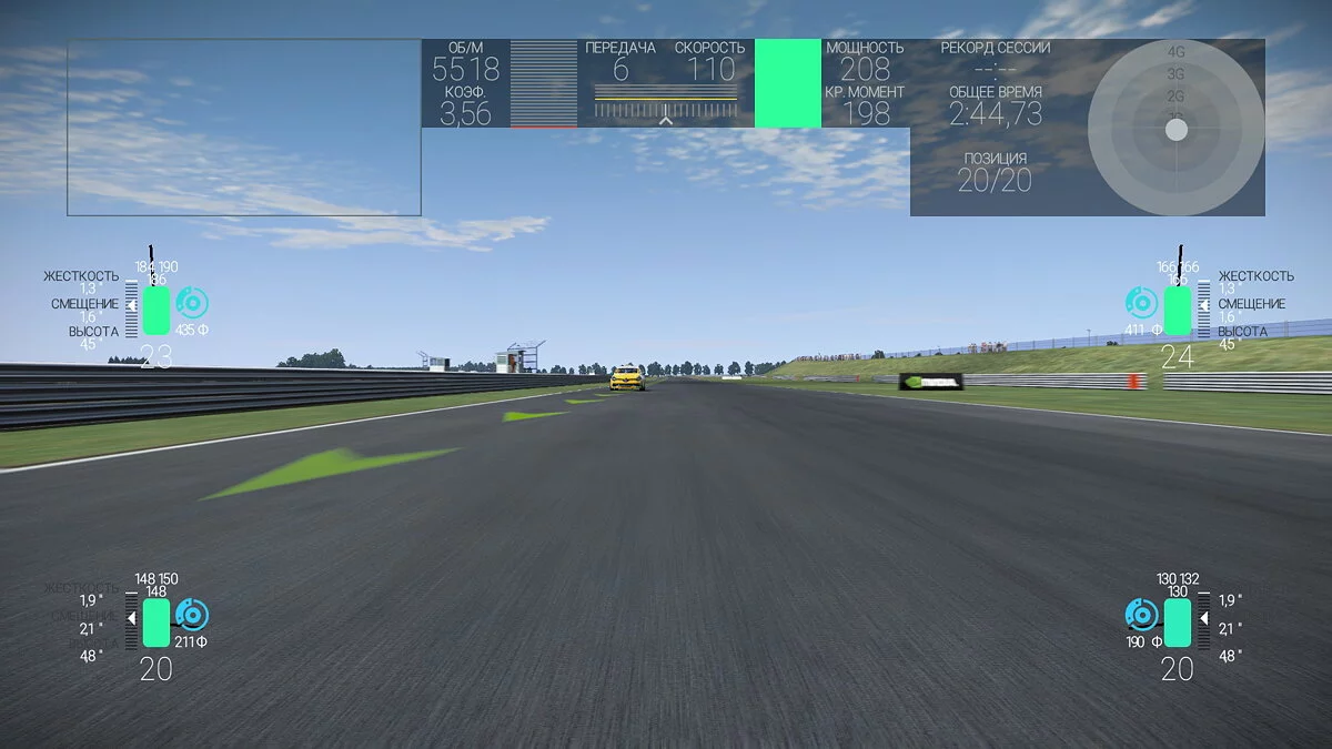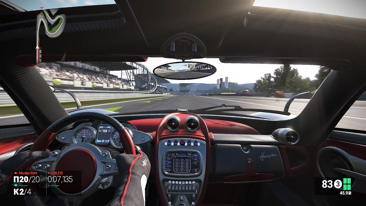 Продолжая список неудачных решений, можно вспомнить унылую камеру «назад», в то время как «вперед» предлагается целый набор на любой вкус, десятки датчиков, которые непосредственно во время заезда лезут в глаза и показывают все, что только можно, кроме необходимого, а также целый ряд оперативно исправляемых проблем и багов (за шесть дней три патча).