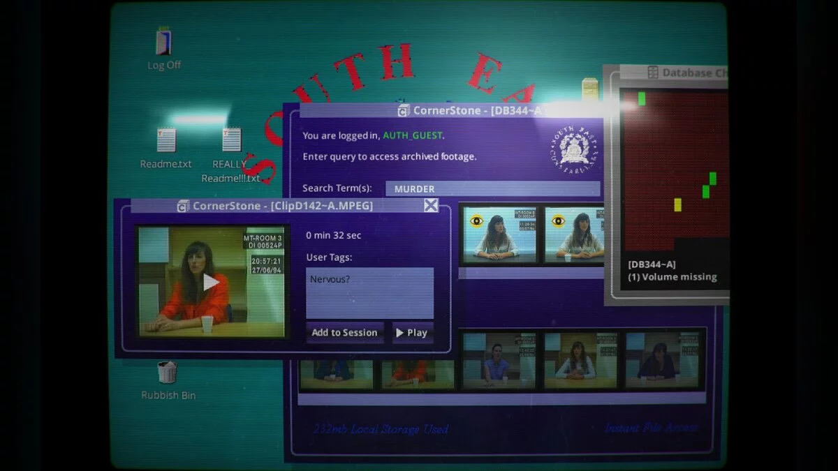 Her Story — это интересный опыт для каждого игрока, любящего захватывающие сюжетные завязки и необычный игровой процесс. Здесь вы не будете бегать по локациям и искать нужные предметы для разгадывания головоломок. Все, что вам необходимо — быть внимательным. чтобы на время прохождения окунуться в шкуру настоящего детектива, цель которого понять, что произошло на самом деле.