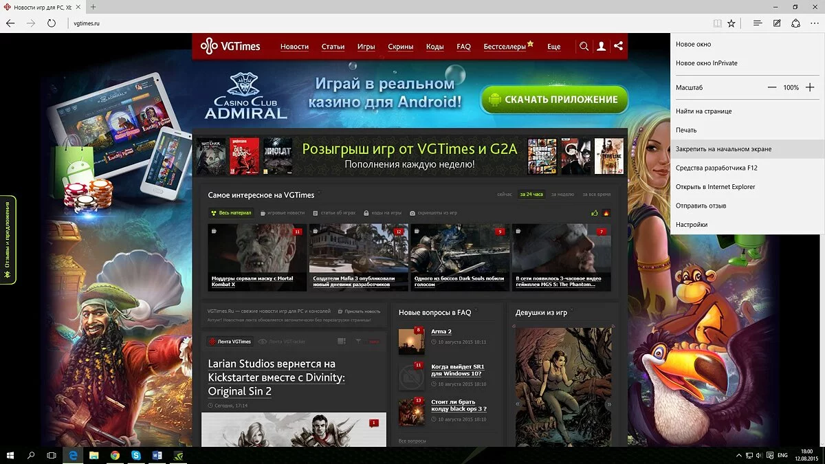 Что касается интерфейса, здесь все не так радужно, как с работоспособностью. Минимализм приобрел новые уровни в своем развитии, убрав из основных возможностей браузера многие популярные и вполне полезные функции. Главным недостатком Edge является невозможность установки расширений. Да, возможно, в будущем Microsoft добавит данную фичу и преподнесет ее как в свое время Apple хвасталась многозадачностью.