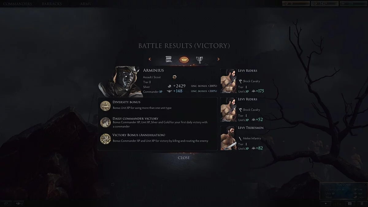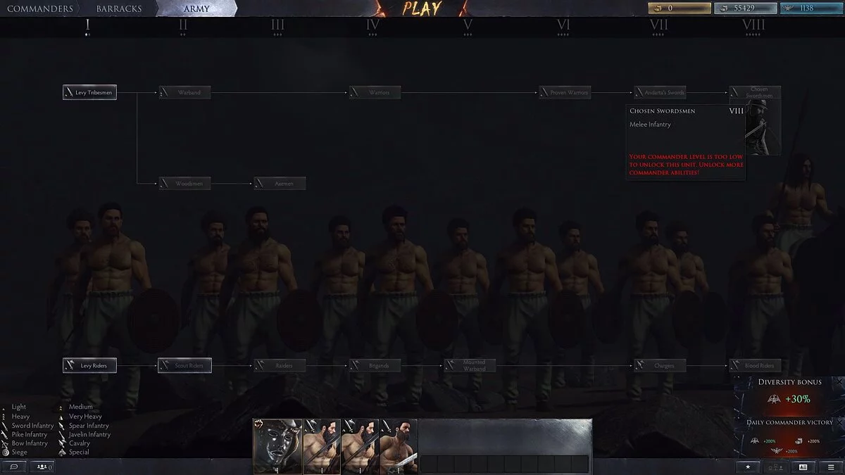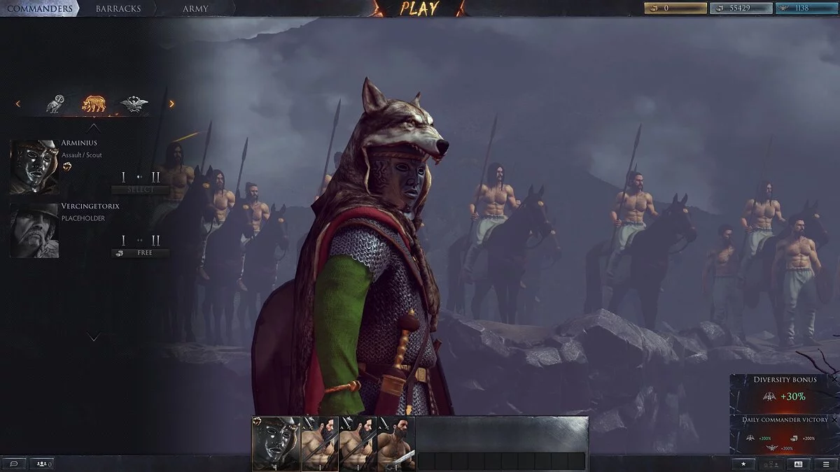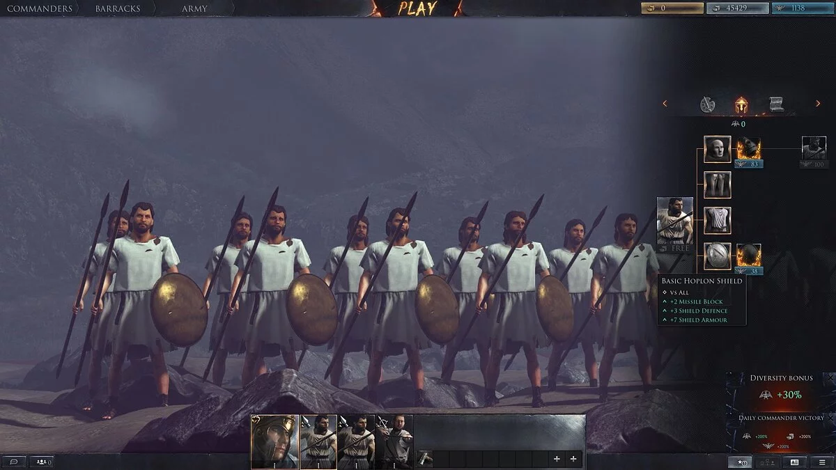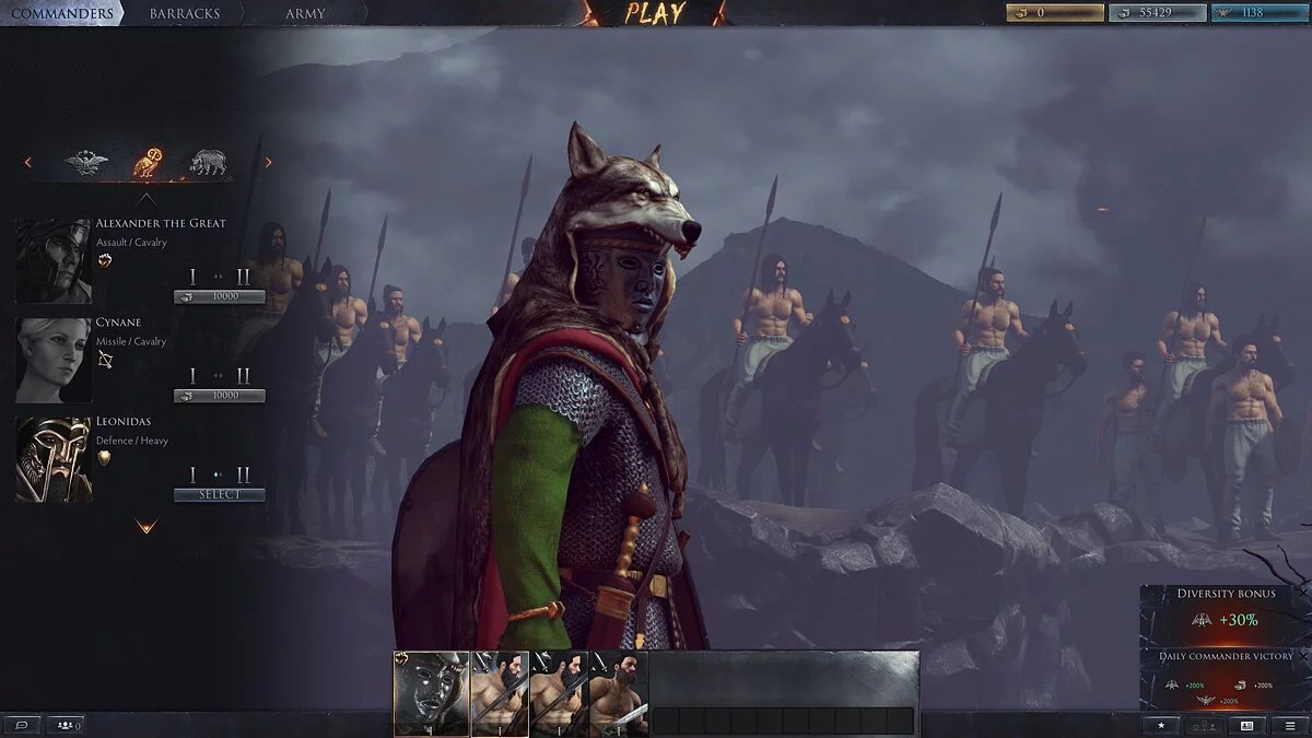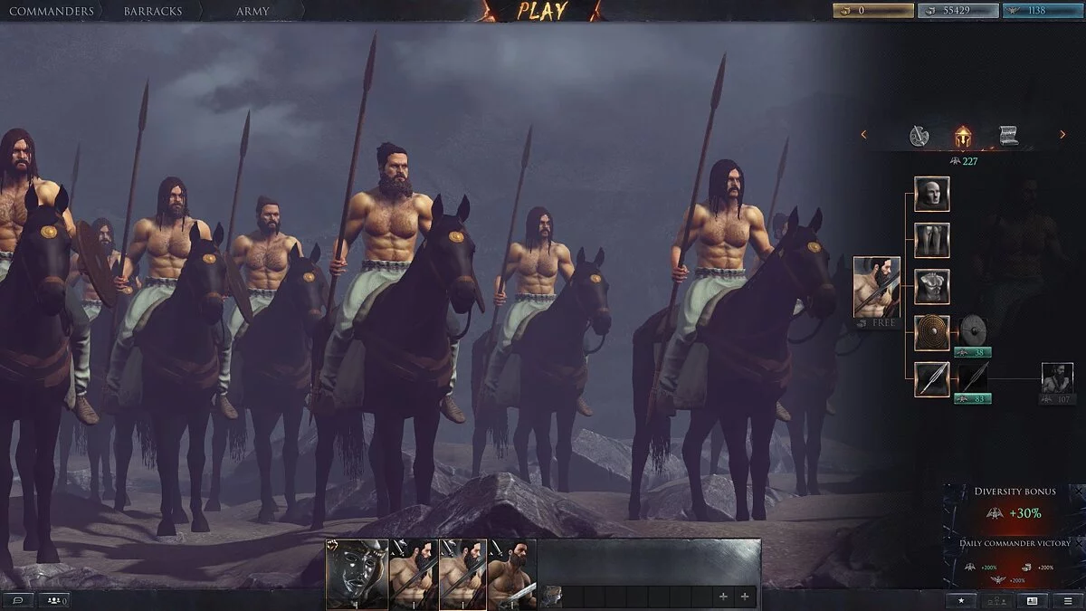 Выбор фракции определяет доступные отряды, а выбор полководца — ту или иную тактику на поле боя, поскольку у каждого полководца есть свои собственные умения, улучшающие либо поведение армии на поле боя, либо усиливающие юниты под его контролем. На текущий момент отрядов у Рима и Греков уже достаточно много — целых 10 линий или уровней, а вот варвары пока отстают — у них только 5 линий юнитов.