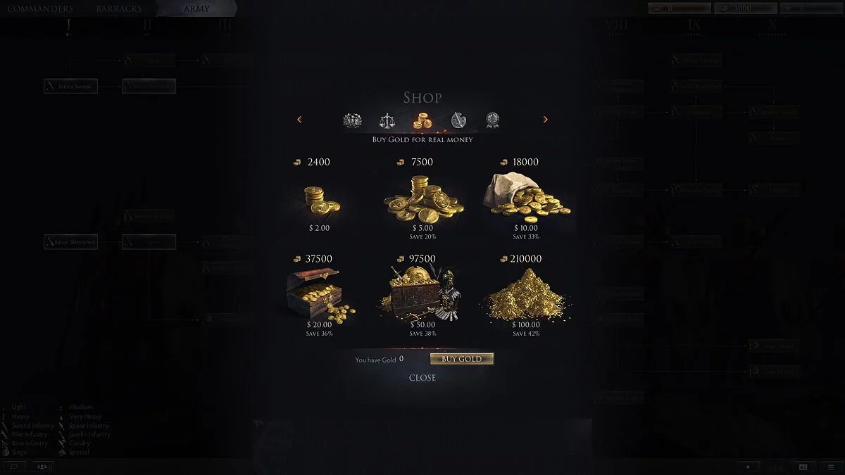 В Total War: Arena есть три вида «ресурсов» — непосредственно опыт, зарабатываемый в боях, внутриигровая валюта, которая выдается за победу, а также золото. Разработчики завязали всю прокачку на опыт и валюту, другое дело, что за каждый бой ее начисляют очень мало и поначалу очень, очень трудно играть, поскольку все вокруг будут сильнее.