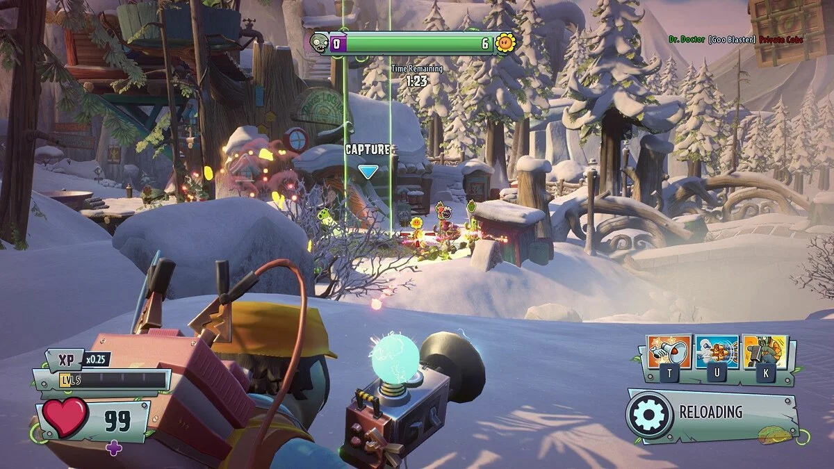 Да, любителям длительных баталий разработчики предложили режим Turf Takeover, своеобразный микс из разных карт из «частных режимов» Gardens & Graveyards и Herbal Assault, но в общем плане ничего нового он не дает. Все также нужно удержать или захватить точку, пусть даже действо происходит вперемешку и за разные команды.