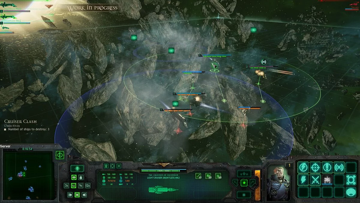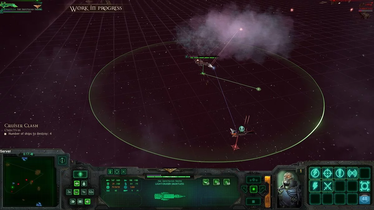 И, судя по бете, у Tindalos Interactive отлично получилось передать атмосферу темной вселенной — речь даже не столько о мрачных игровых картах, сколько о главных действующих лицах — космических кораблях! Все они исполнены согласно описанию, так что вы увидите многокилометровые космолеты, а их технические характеристики потребуют учитывать размеры, дабы правильно управлять. Если коротко — чем больше корабль — тем более он громоздкий и медленный, но бывают и исключения, например, хаоситы традиционно маневренней и быстрее имперцев.